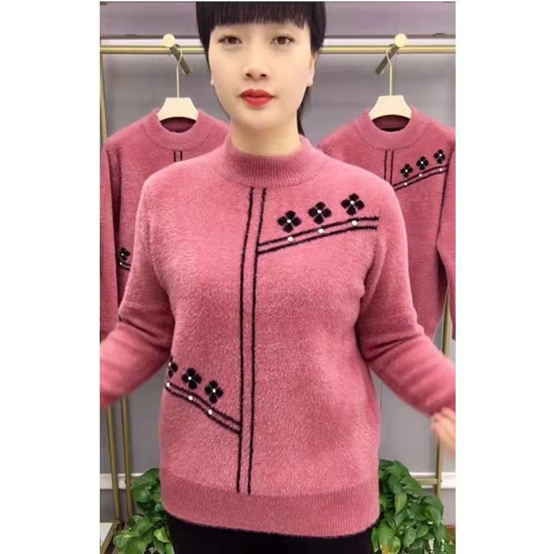 엄마의 가을과 겨울 옷 두꺼운 따뜻한 옷 느슨한 플러스 사이즈 모조 밍크 캐시미어 스웨터 여성 할머니 옷 노인을위한 기본 셔츠스토어 가기