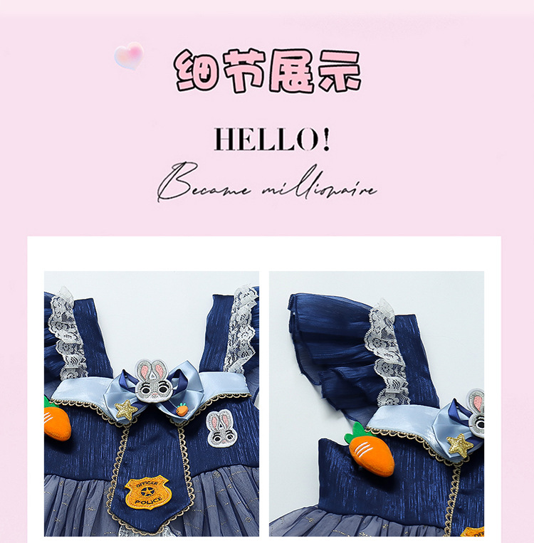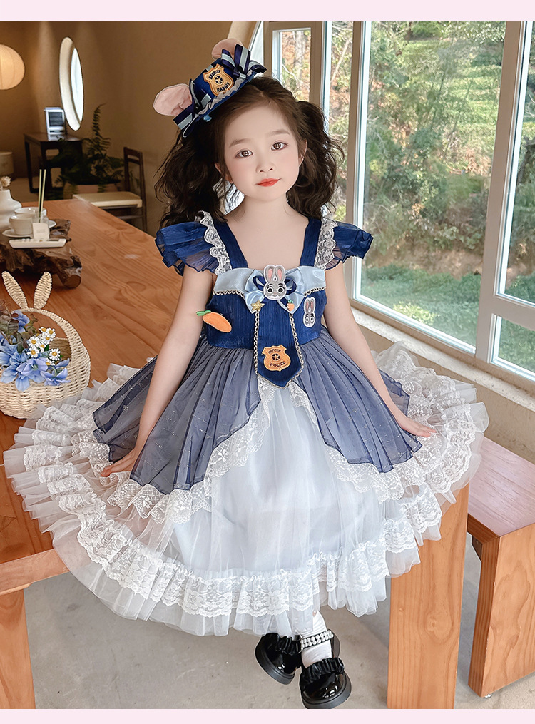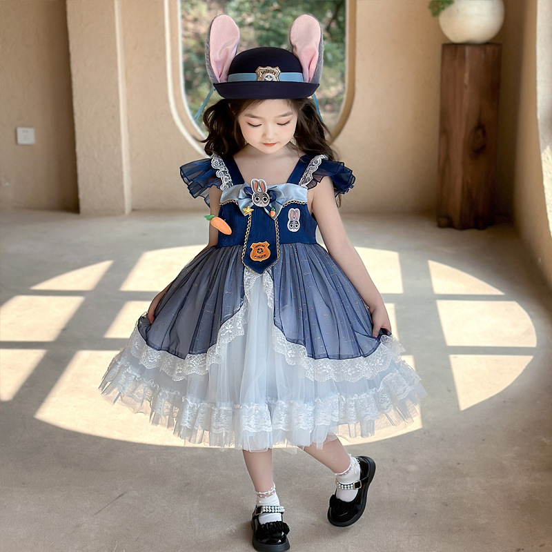 소녀 원피스 여름 로리타 어린이 공주 원피스 주디 토끼 경찰관 옷 어린 소녀 생일 원피스