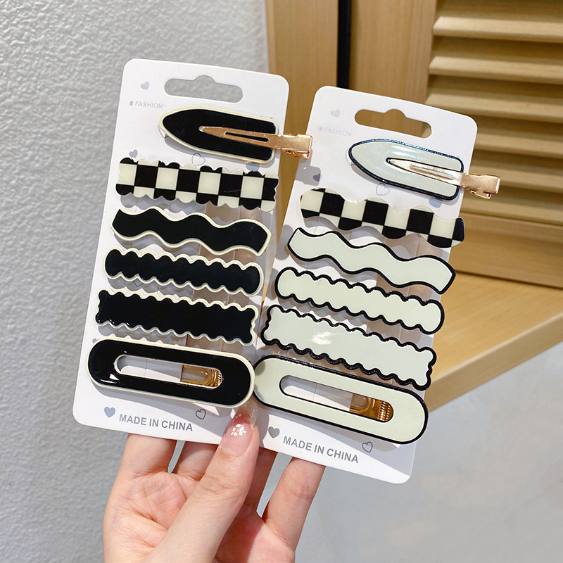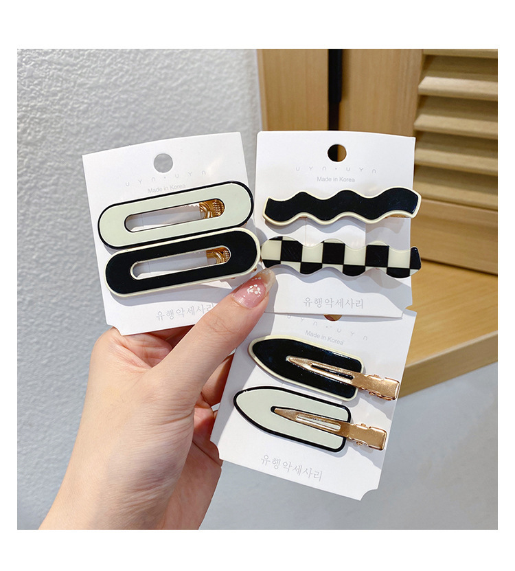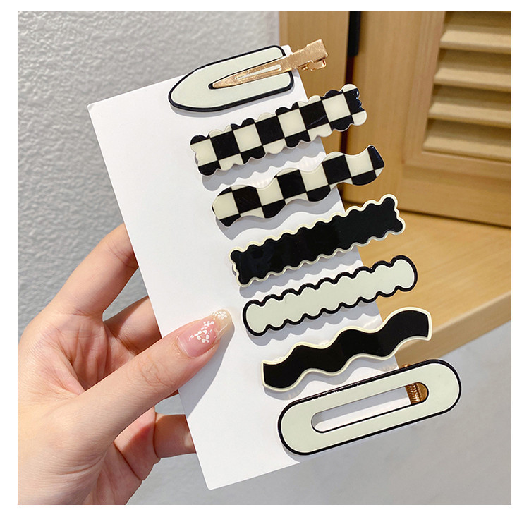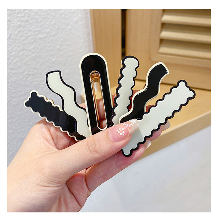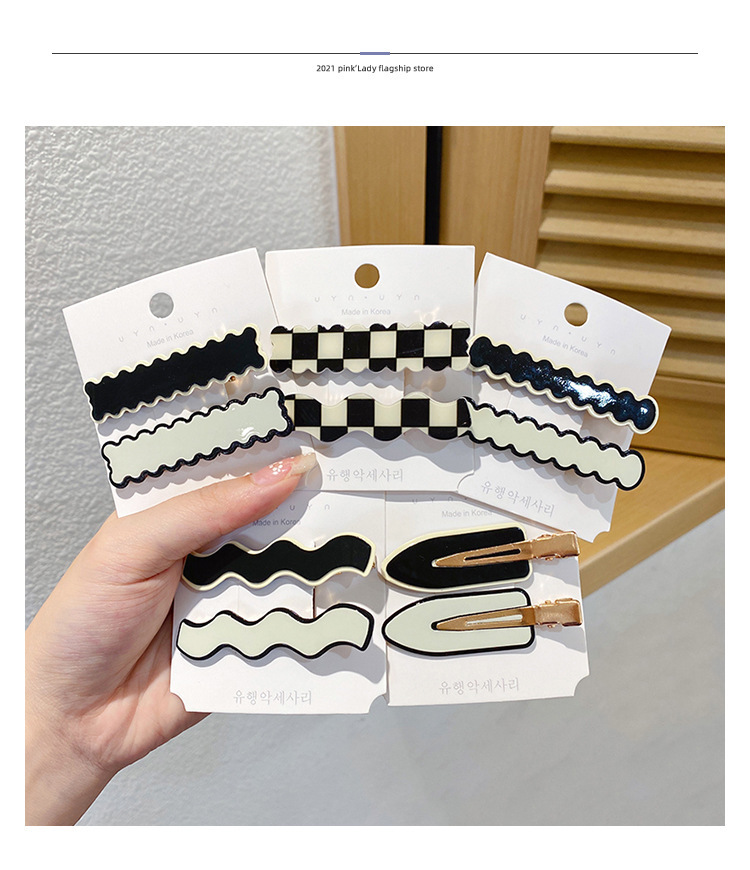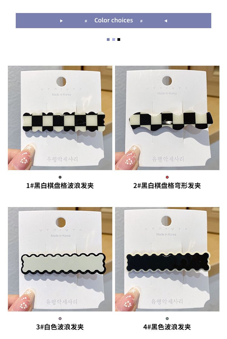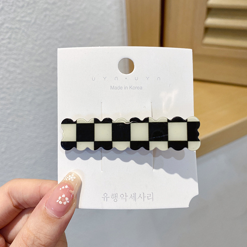 Ins Black and White Checkerboard 헤어핀 빈티지 소녀의 아크릴 사이드 클립 올 매치 뱅 클립 인터넷 연예인 뷰티 메이크업 트레이드리스 클립