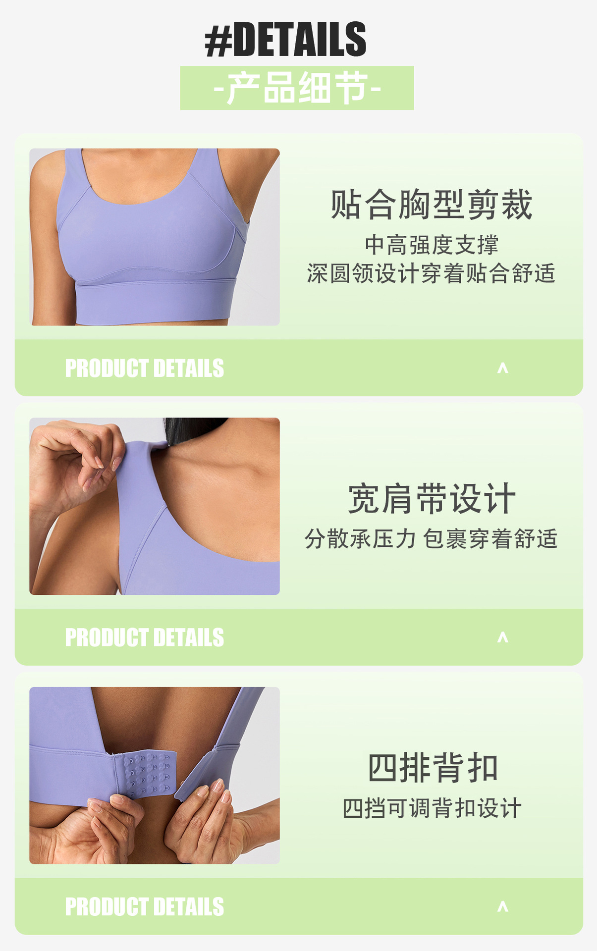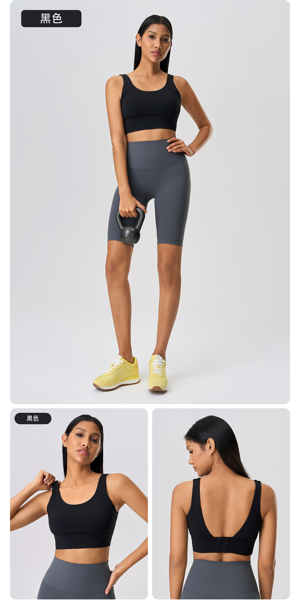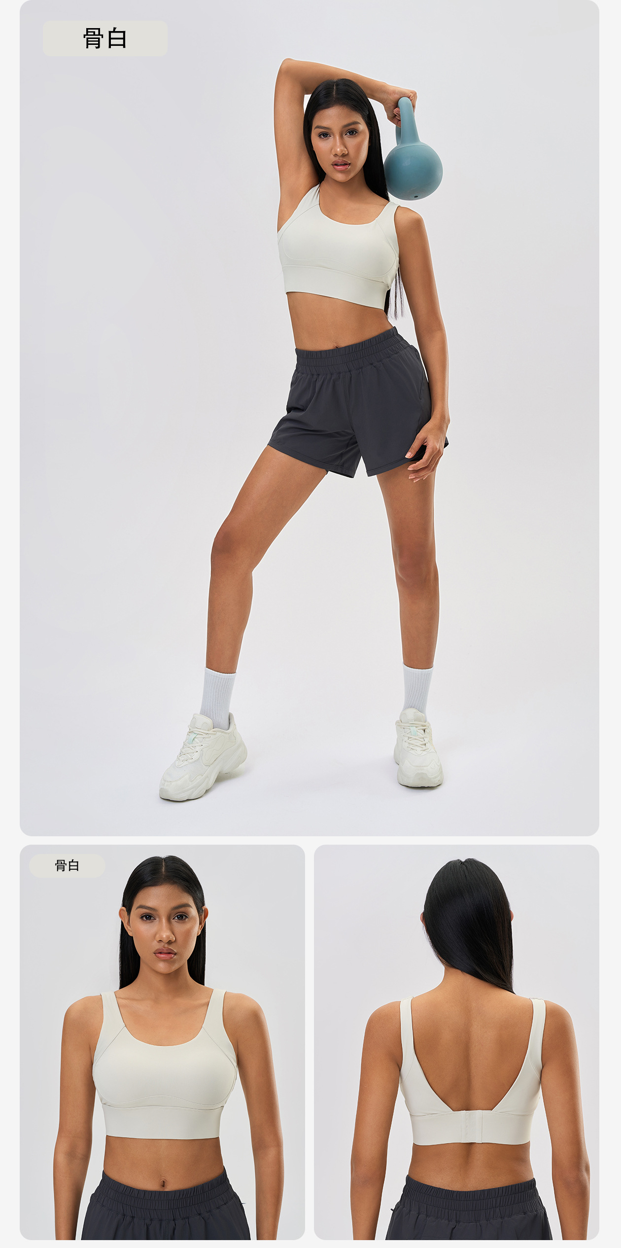 보조가슴을 모아주는 고정컵 요가브라, 충격방지 및 처짐방지, 4단 버클 스포츠브라 여성용 D25066