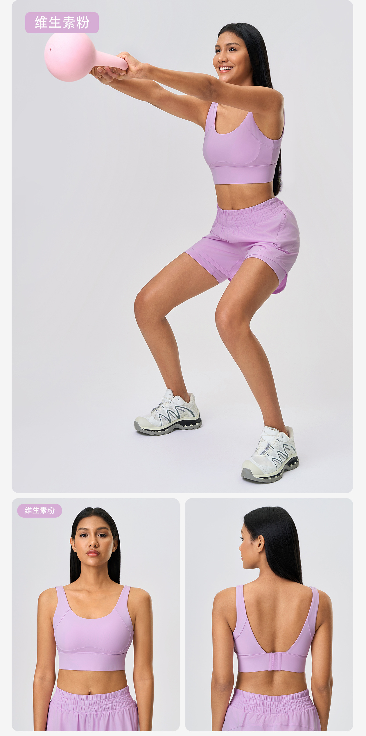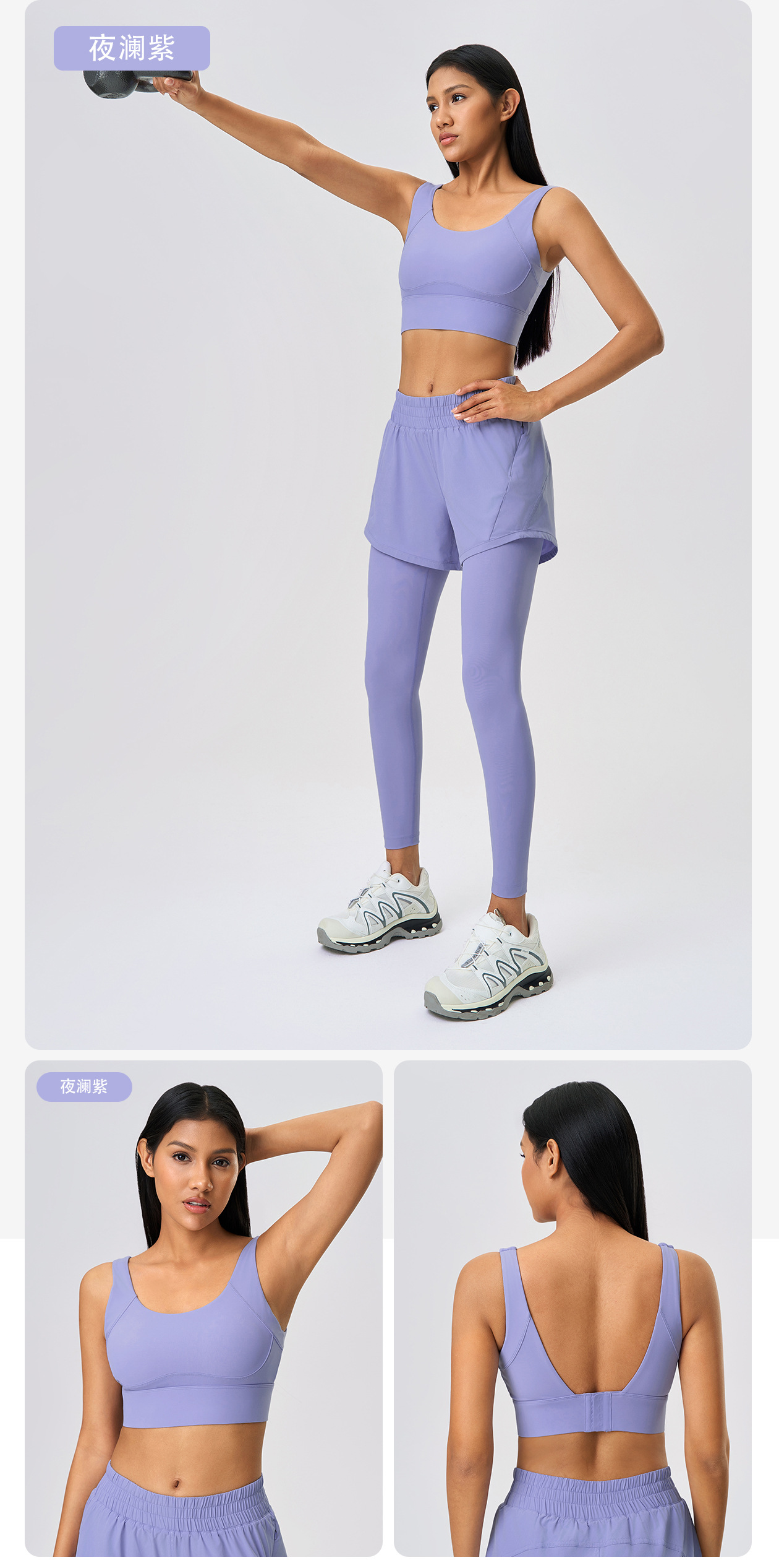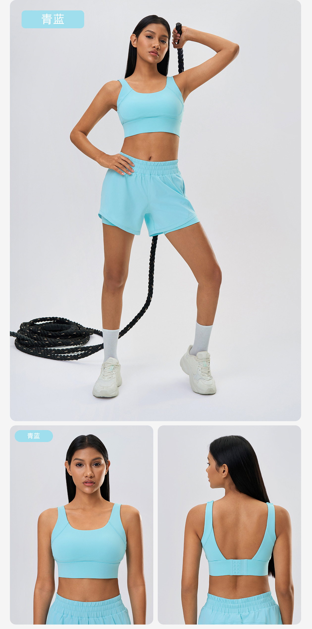 보조가슴을 모아주는 고정컵 요가브라, 충격방지 및 처짐방지, 4단 버클 스포츠브라 여성용 D25066