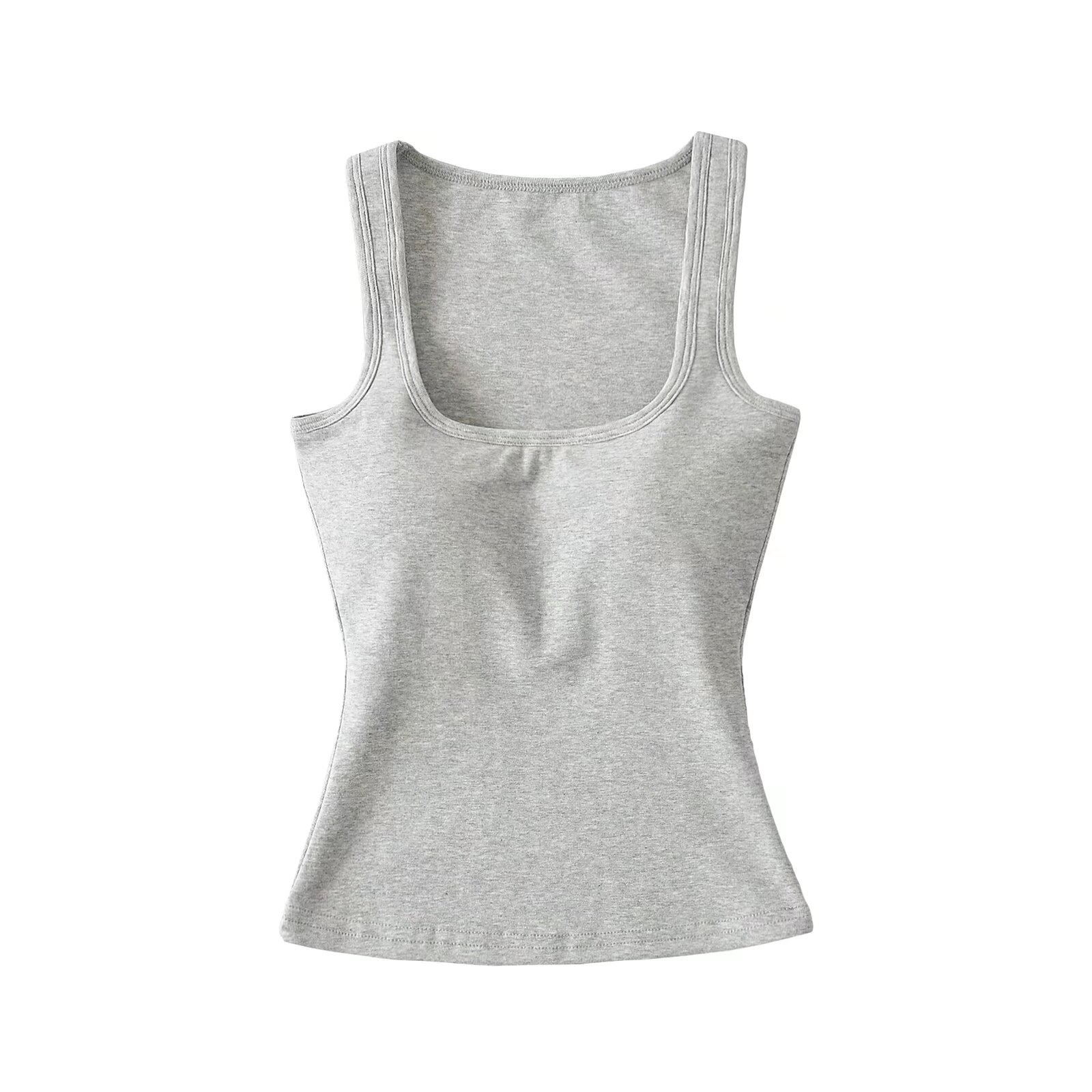 새로운 유럽과 미국의 딥 U-넥 슬림 핏 민소매 슬림 핏 탑 2025 봄 및 여름 스파이스 걸스 외부 착용 내부 카미 솔 여성