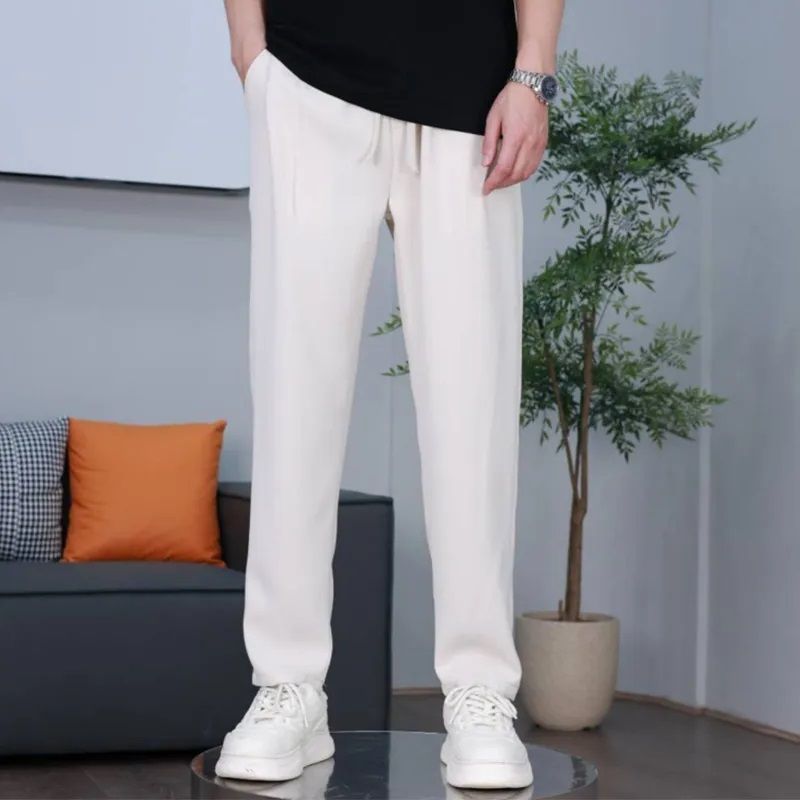 2024 봄 새 [통기성 바지] 남자 실크 슬라이딩 안티 주름 드롭 스트레이트 바지 올 매치 바지스토어 가기