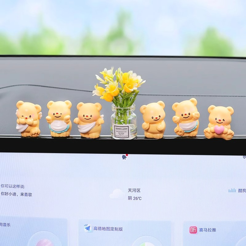귀여운 크림 베어 자동차 장식 자동차 인테리어 장식 중앙 콘솔 디스플레이 데스크탑 귀여운 귀여운 경화 인형