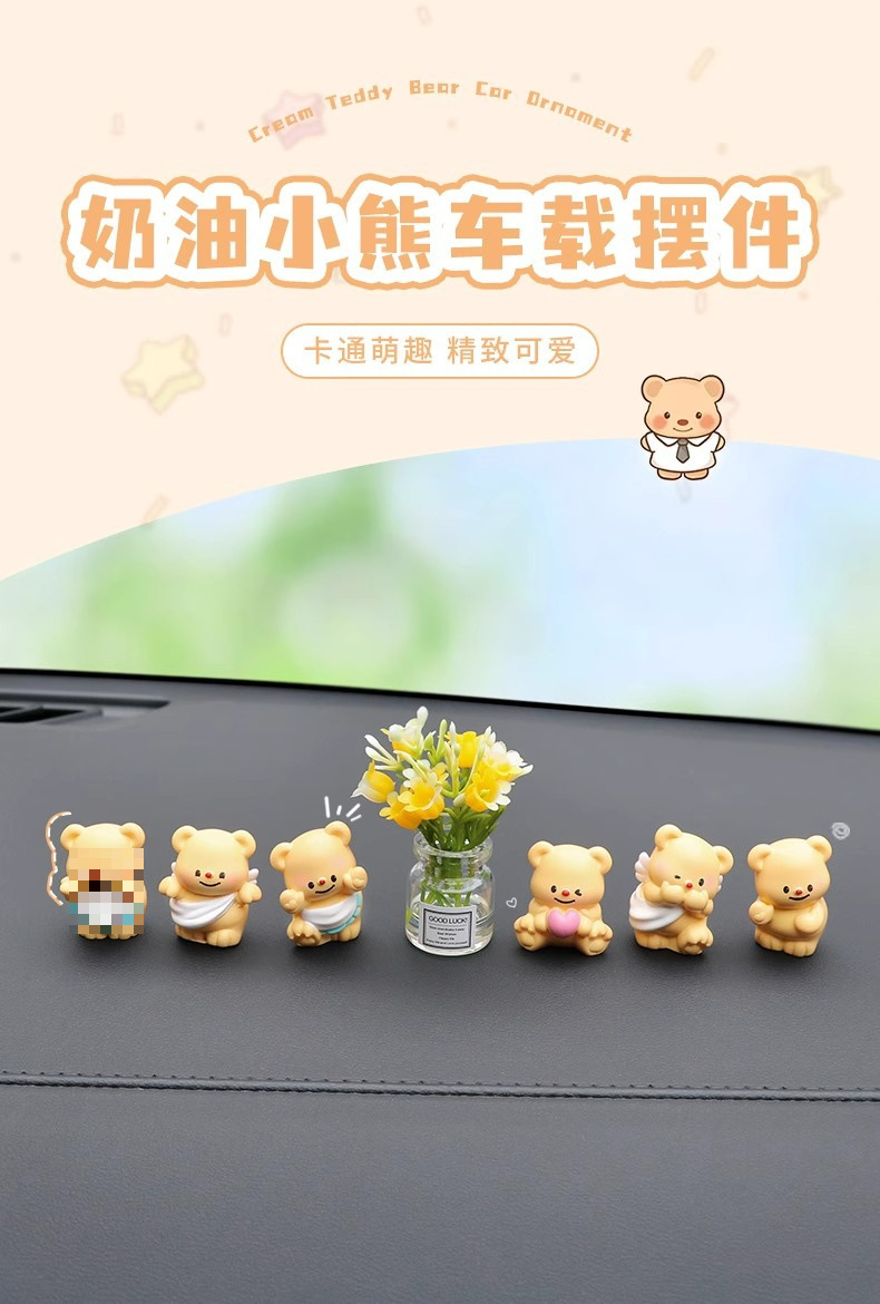 귀여운 크림 베어 자동차 장식 자동차 인테리어 장식 중앙 콘솔 디스플레이 데스크탑 귀여운 귀여운 경화 인형스토어 가기