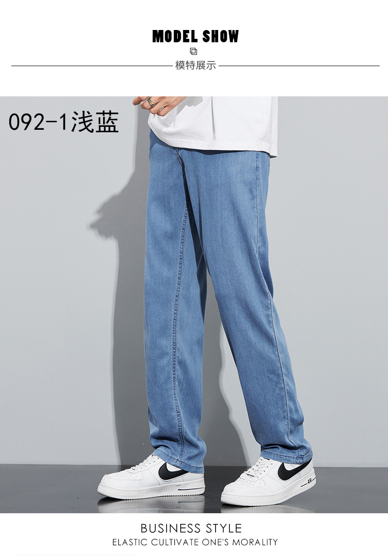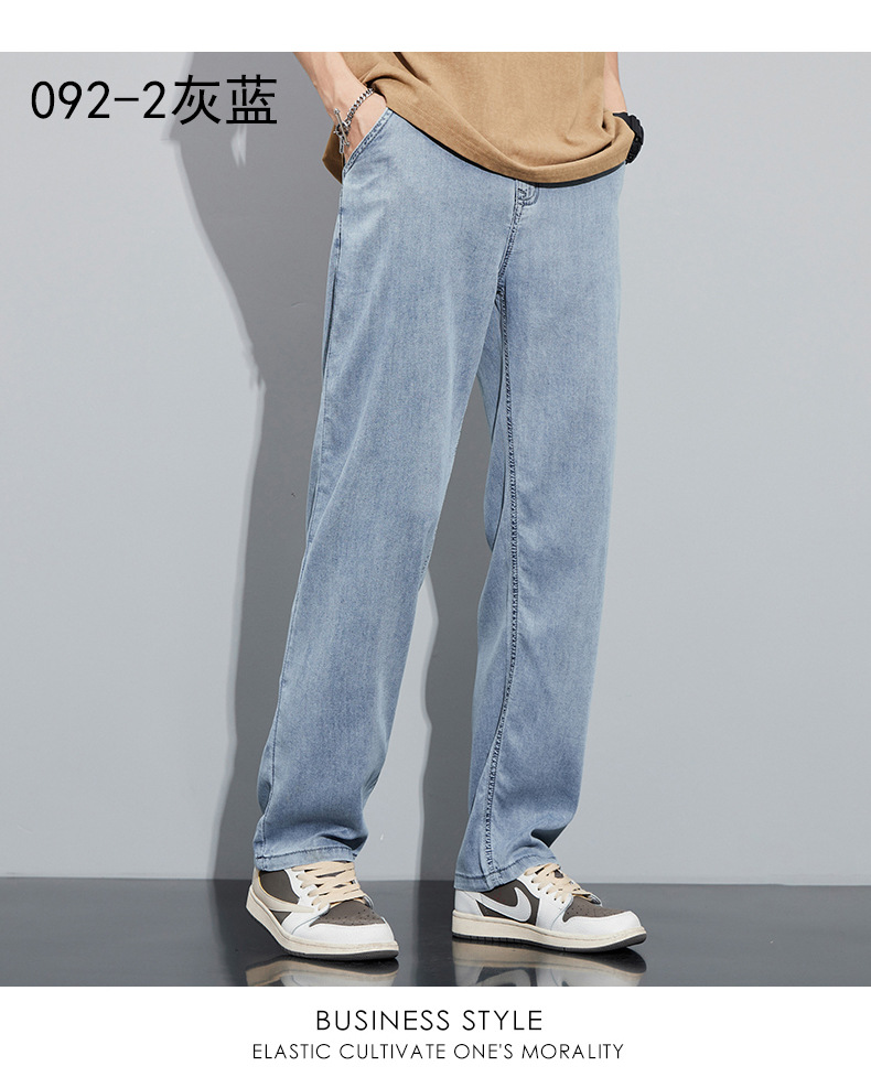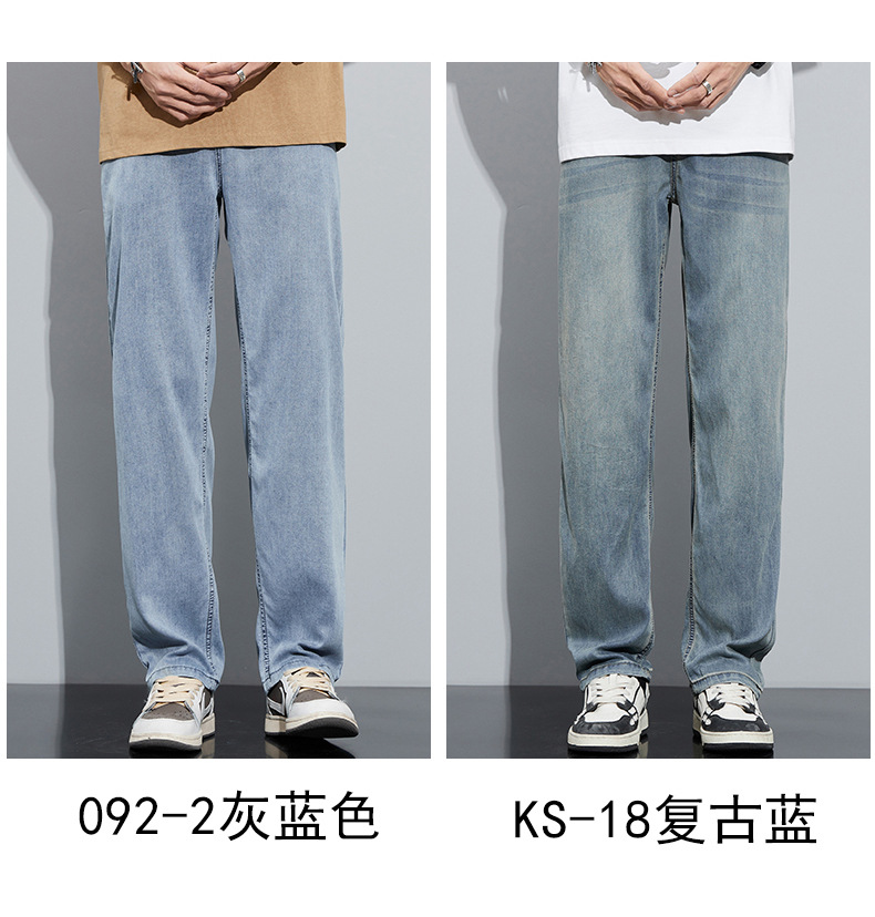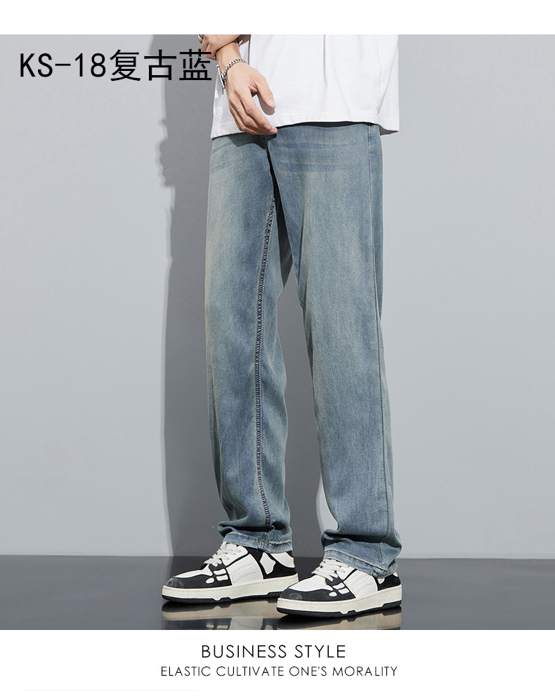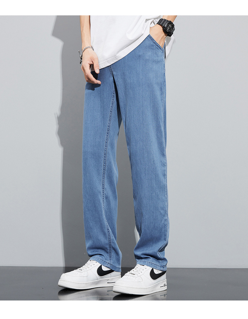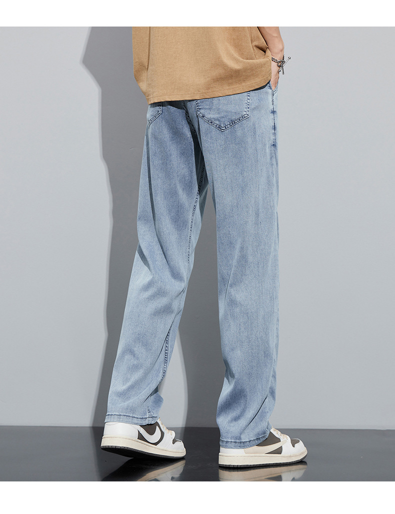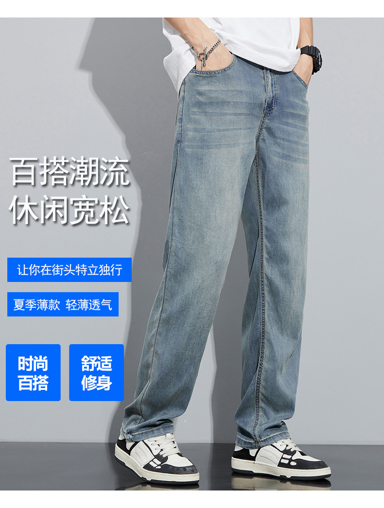 아이스 실크 청바지 남자의 얇은 여름 스트레이트 느슨한 텐셀 넓은 다리 바지 빈티지 여름 남자 캐주얼 긴 바지스토어 가기