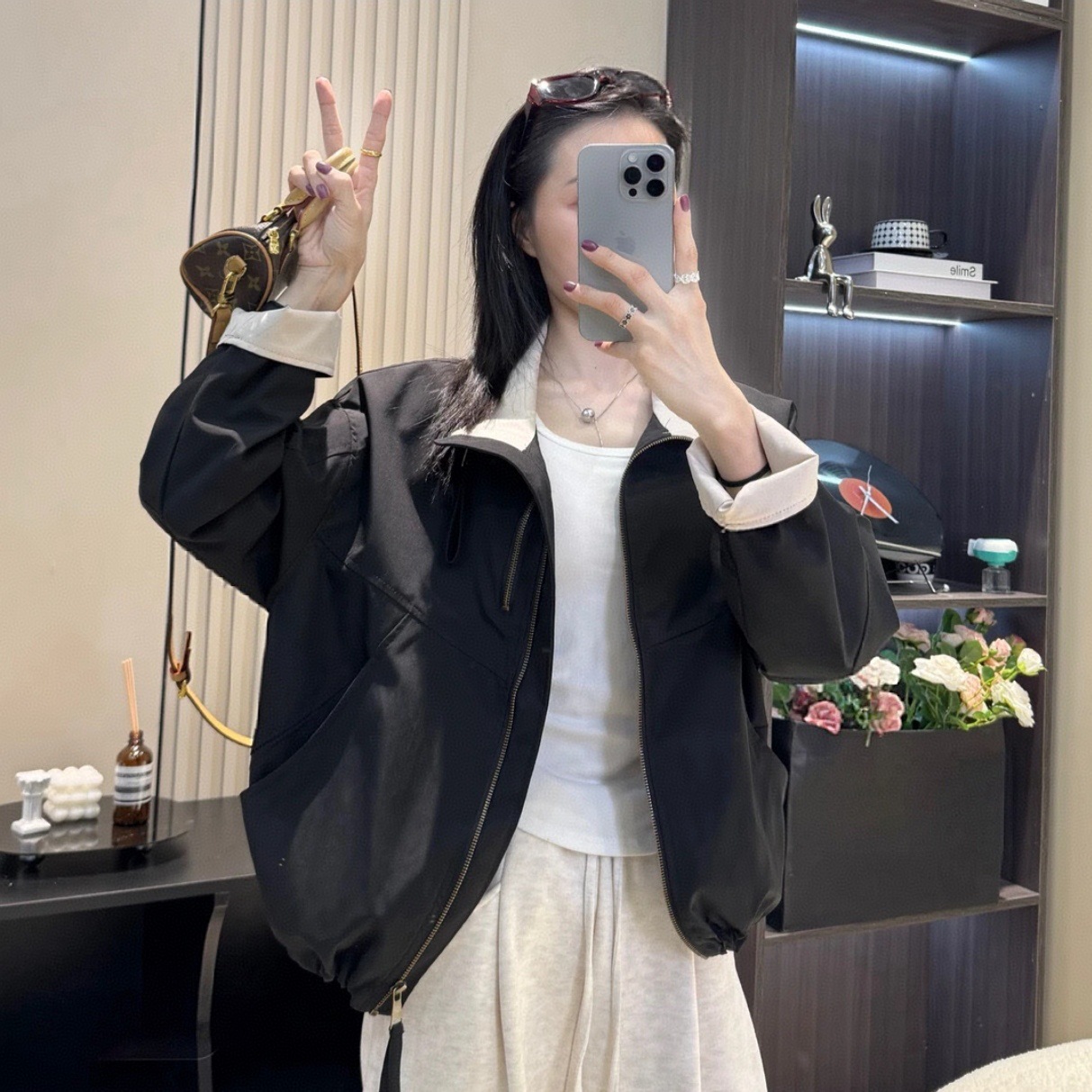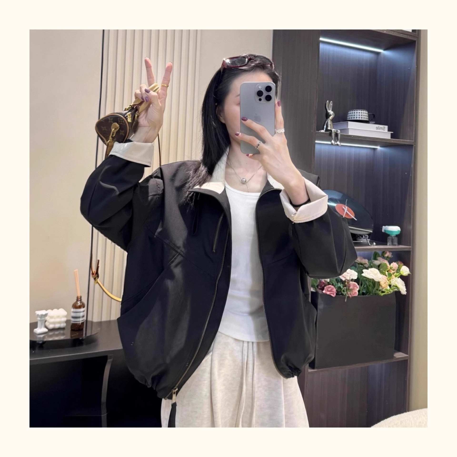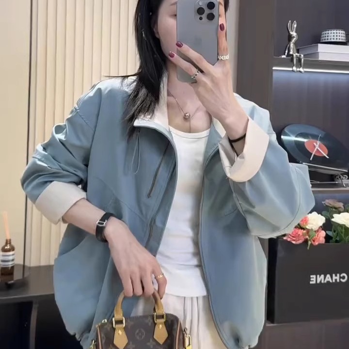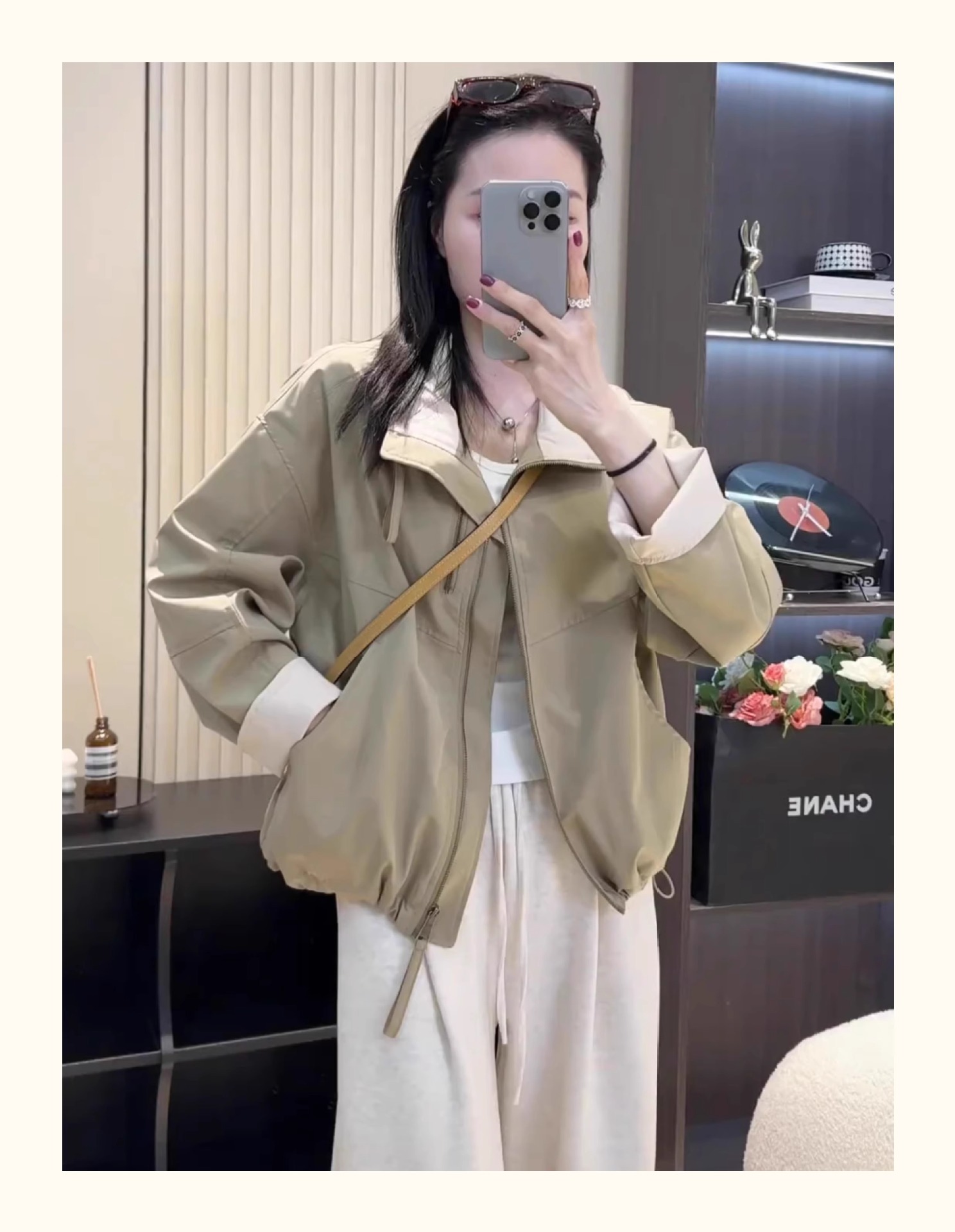 한국 스타일 더블 지퍼 스탠드 칼라 재킷 2025 가을 루즈 캐주얼 다목적 여성 재킷 A3197