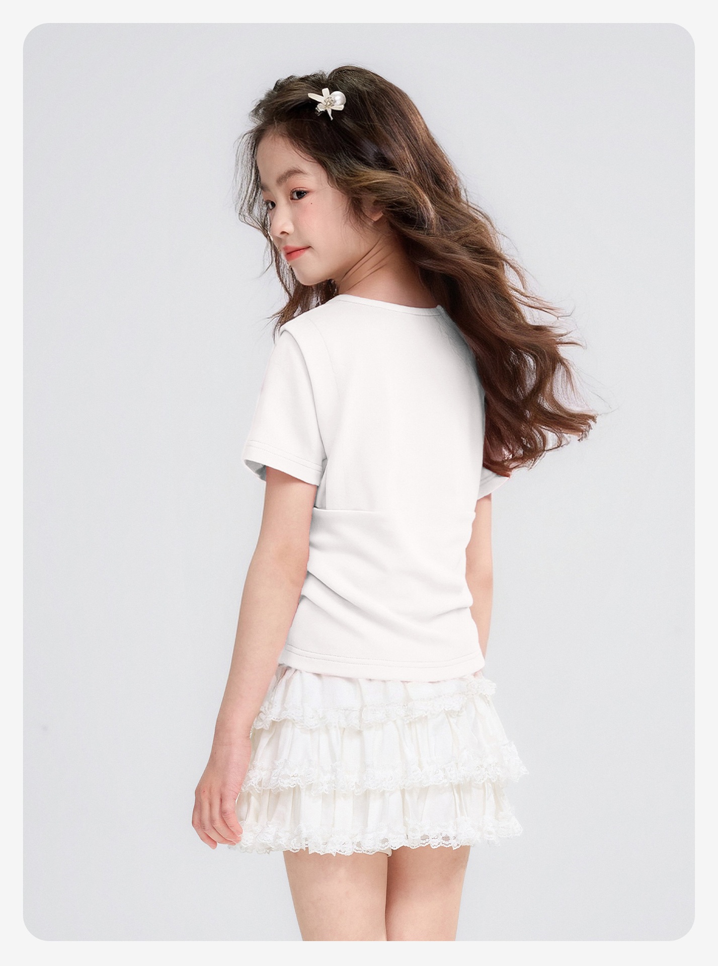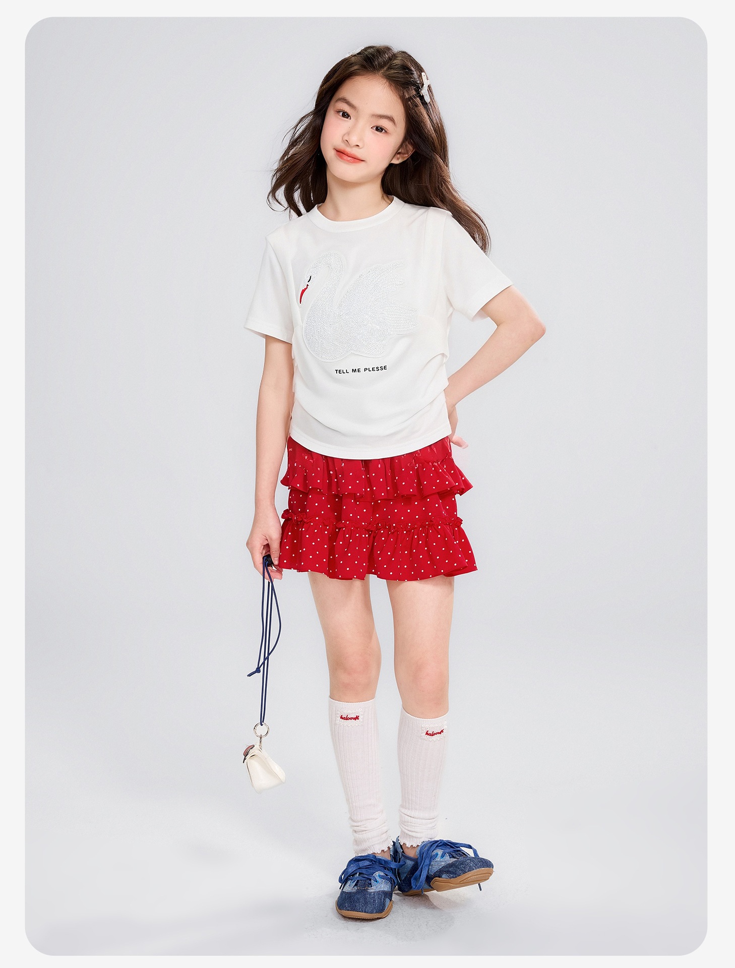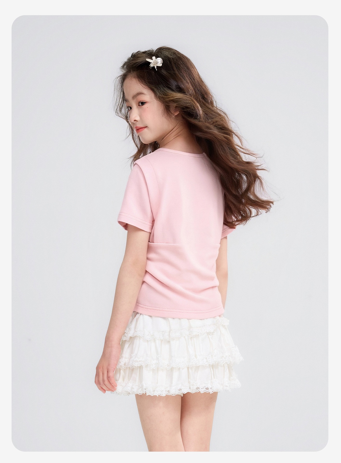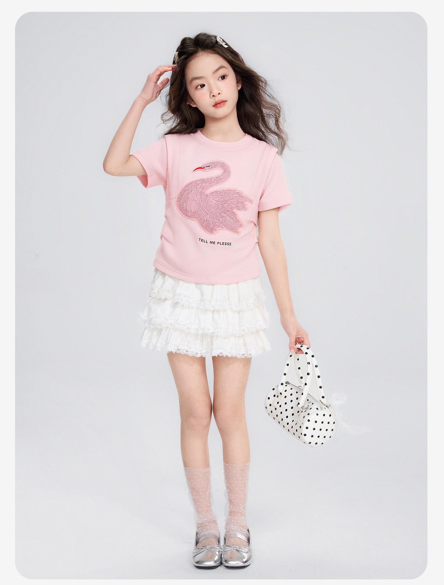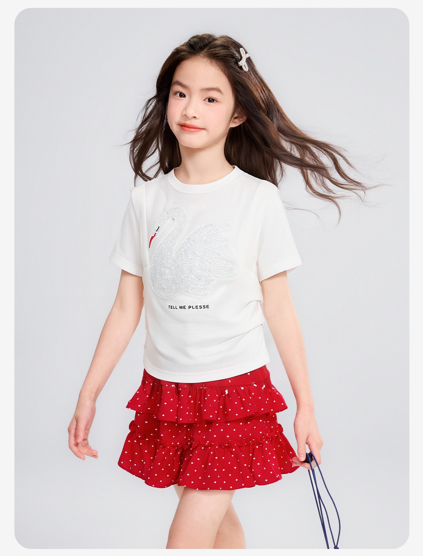 [100 면] 여자 반팔 티셔츠 여름 2025 새로운 어린이 스팽글 만화 어린 소녀 패션 짧은 T