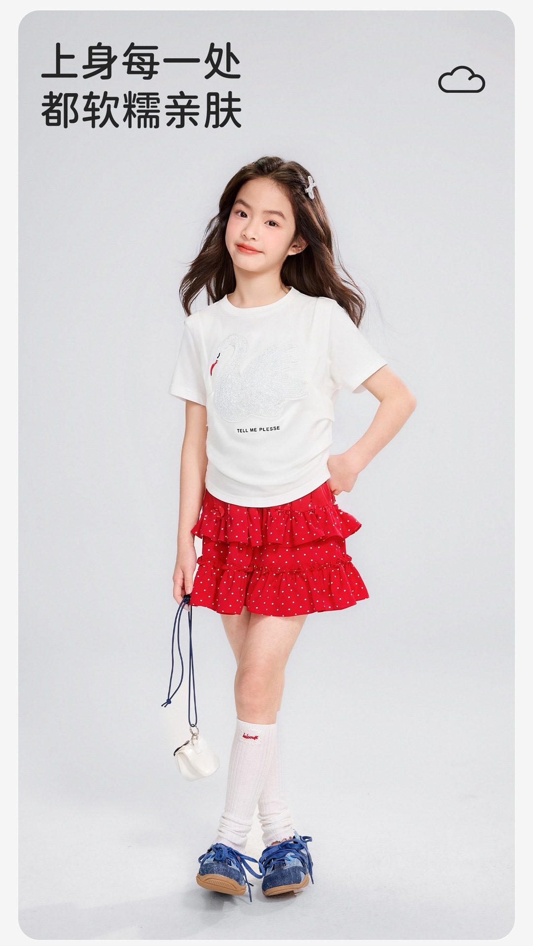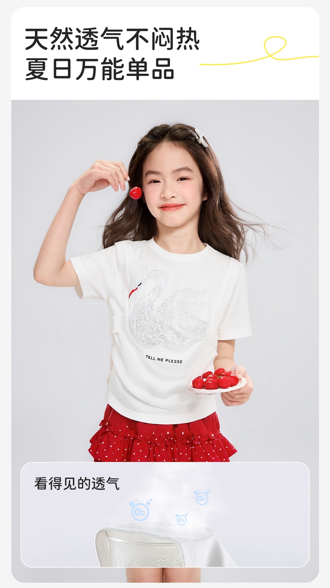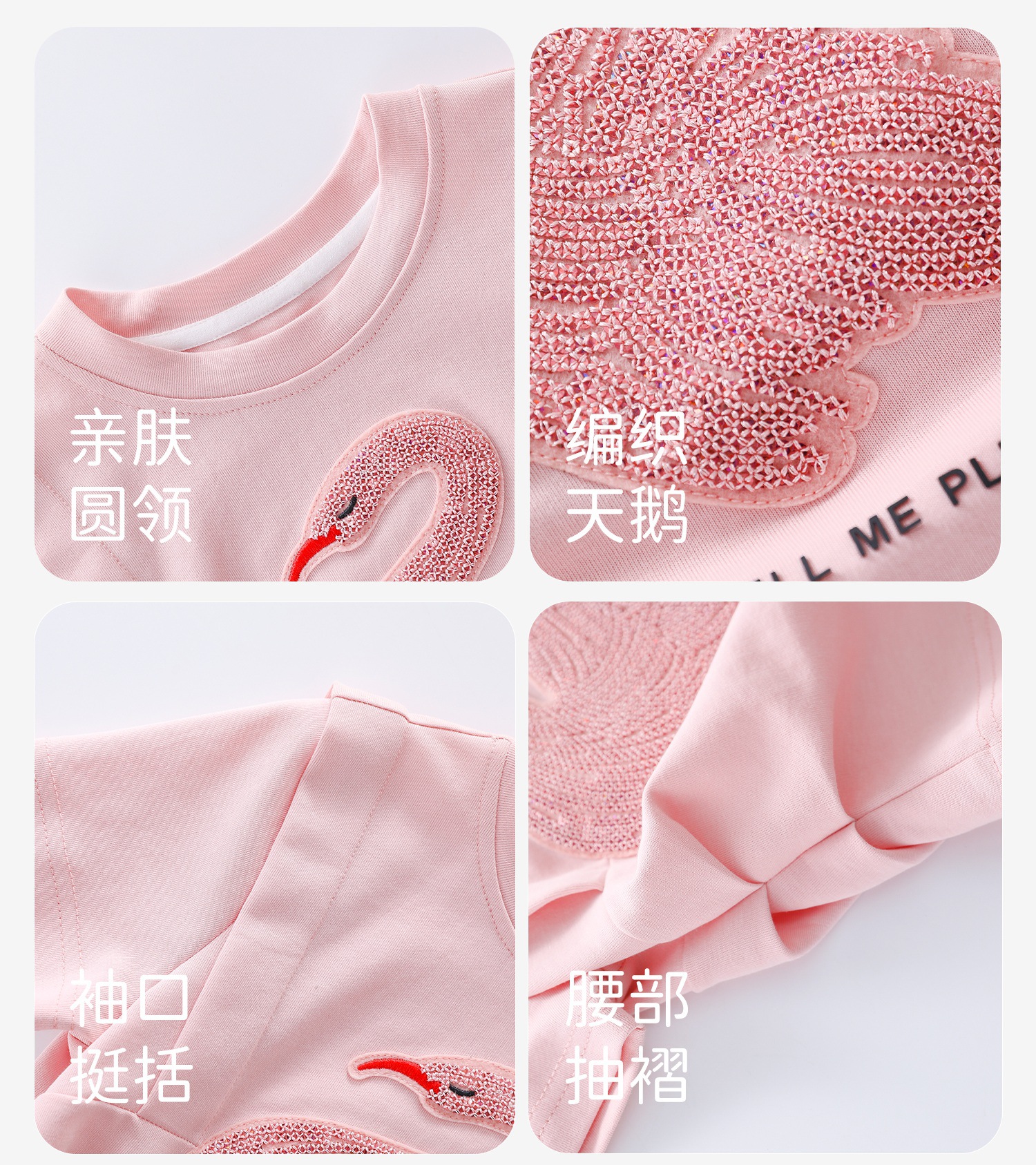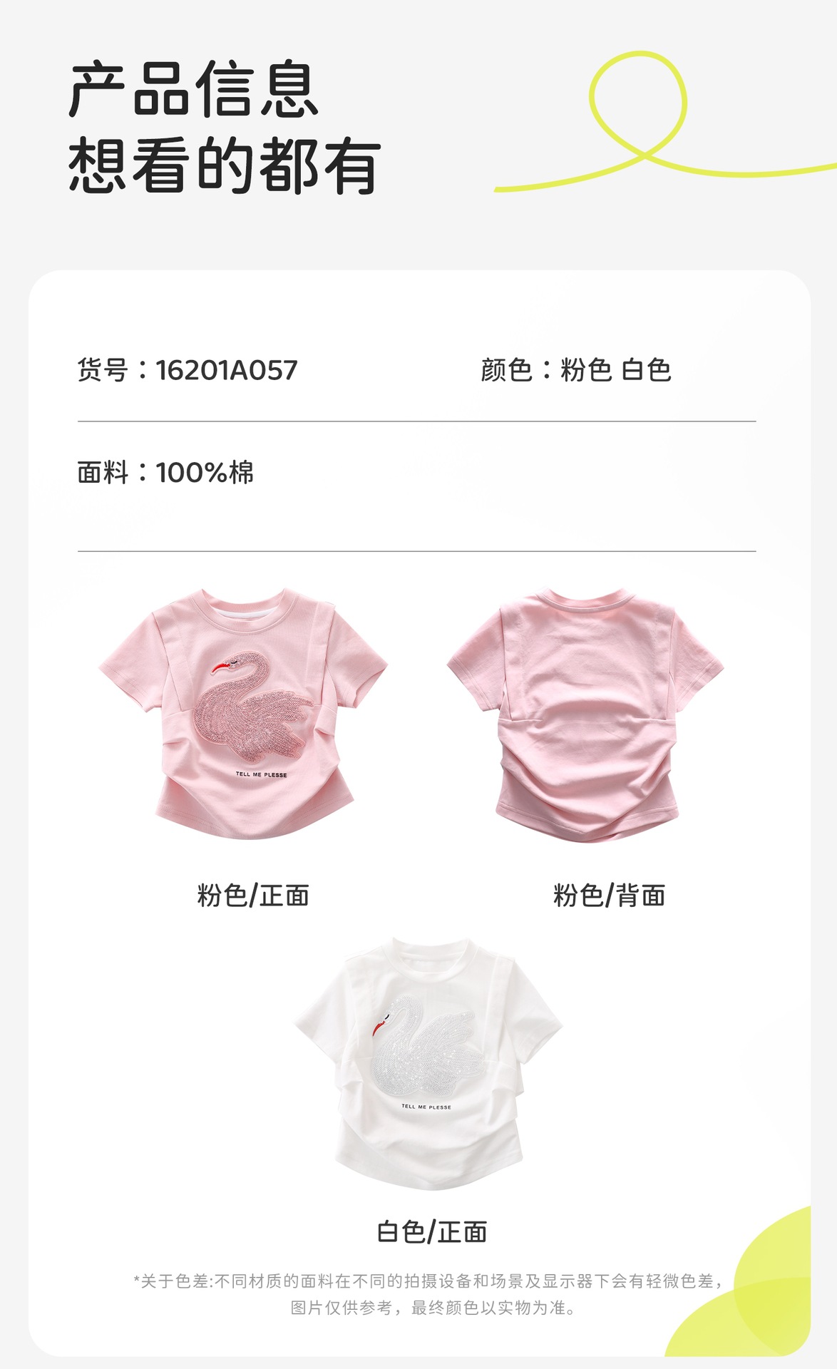 [100 면] 여자 반팔 티셔츠 여름 2025 새로운 어린이 스팽글 만화 어린 소녀 패션 짧은 T스토어 가기