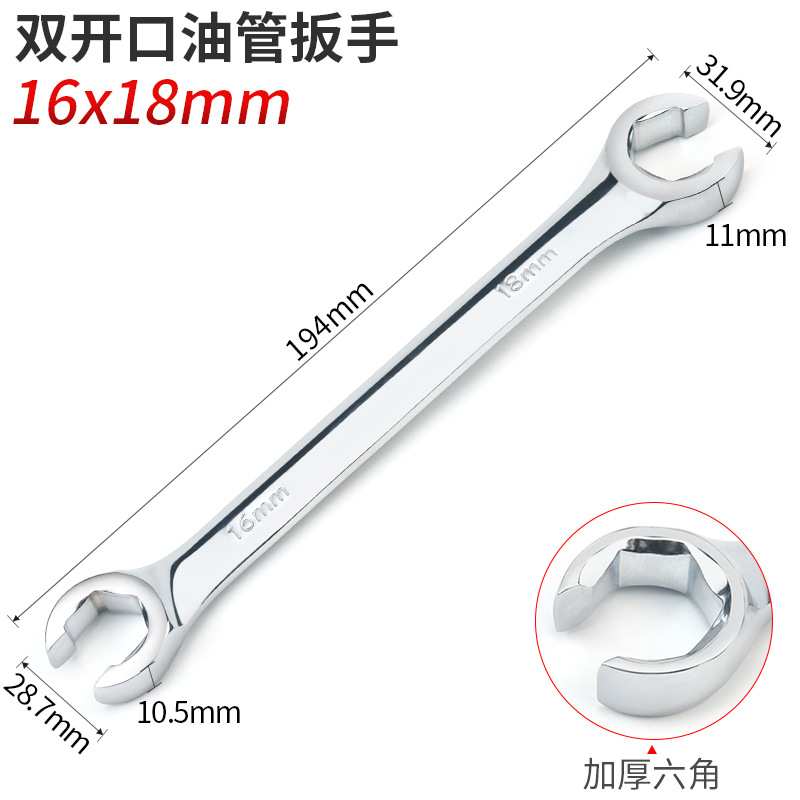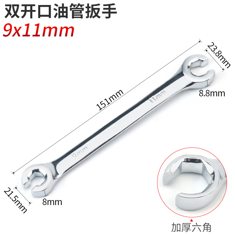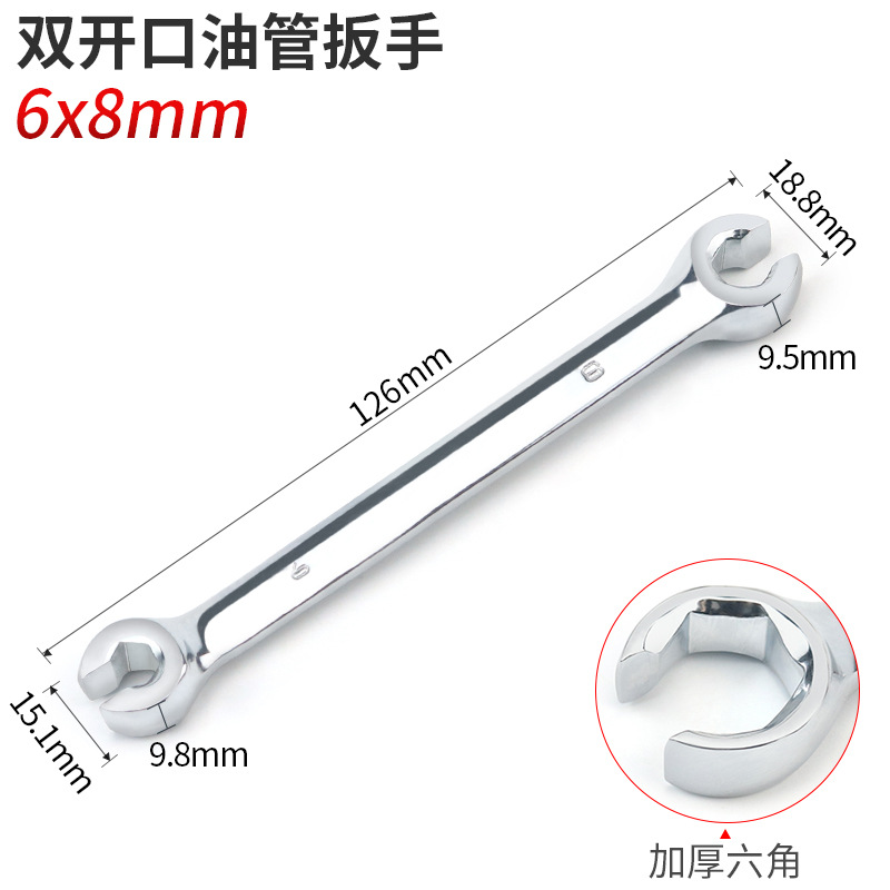 더블 헤드 육각형 개방형 오일 파이프 렌치 뻣뻣한 자동차 브레이크 오일 회로 제거 도구 6-27mm