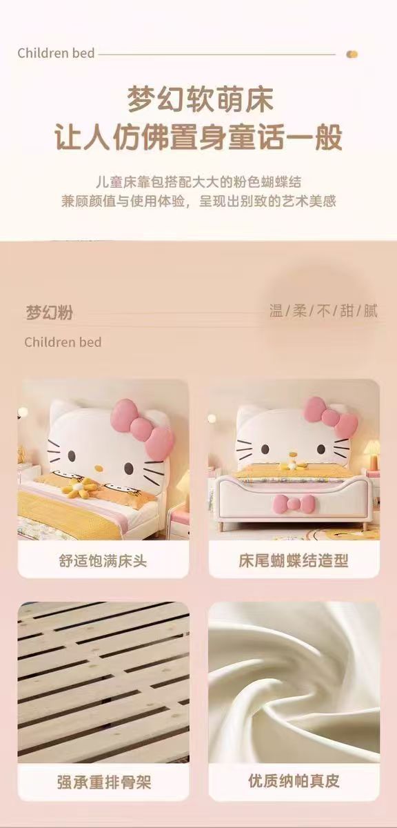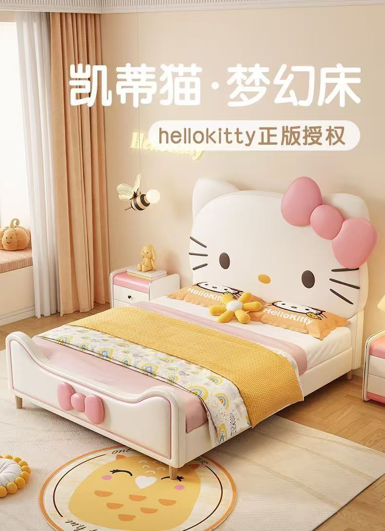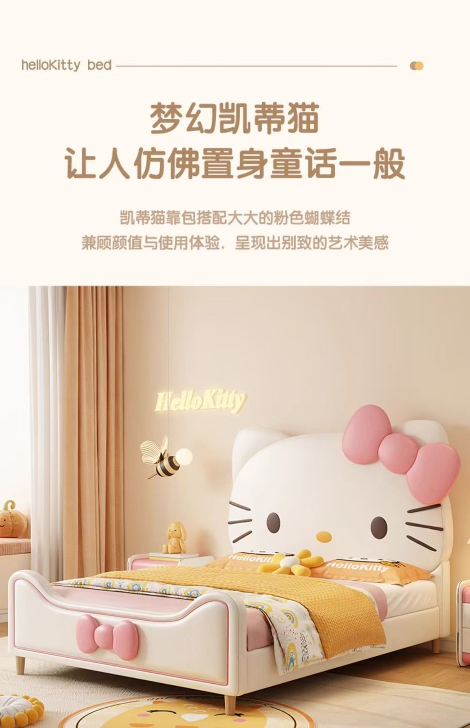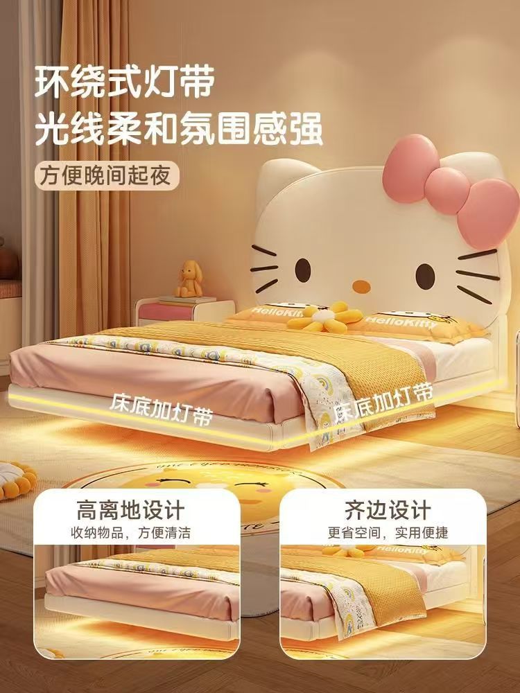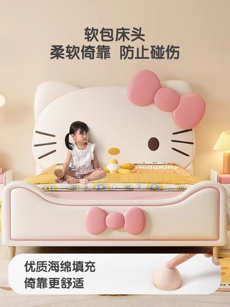 어린이 침대 헬로키티 공주 침대 소녀 가죽 침대 1.5 m 홈 침실 간단한 1.2m 싱글 침대스토어 가기