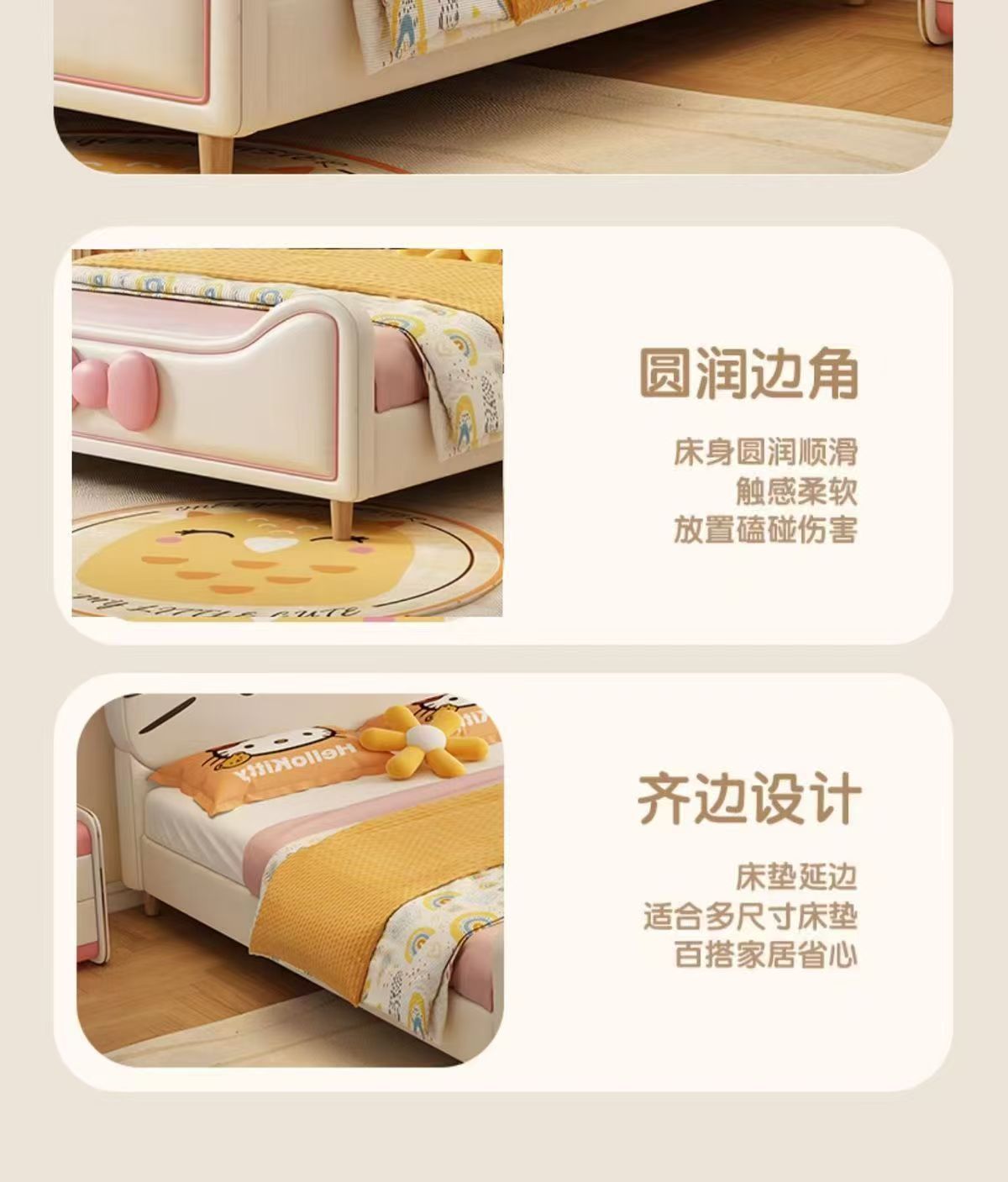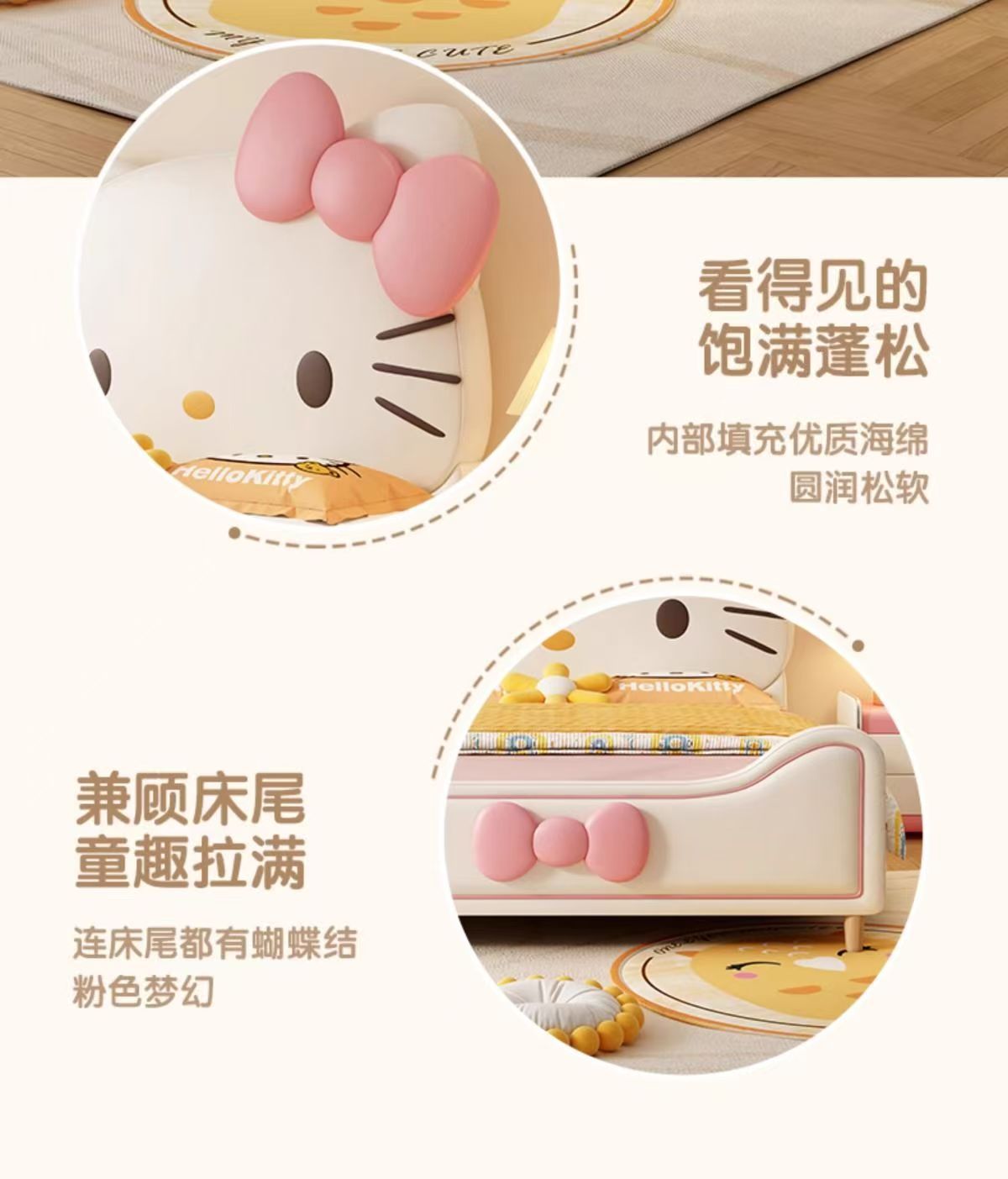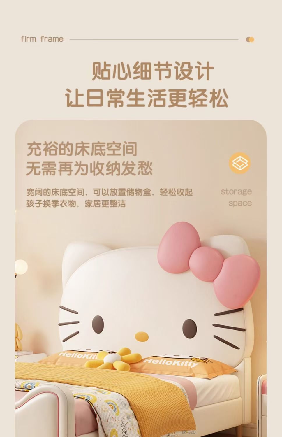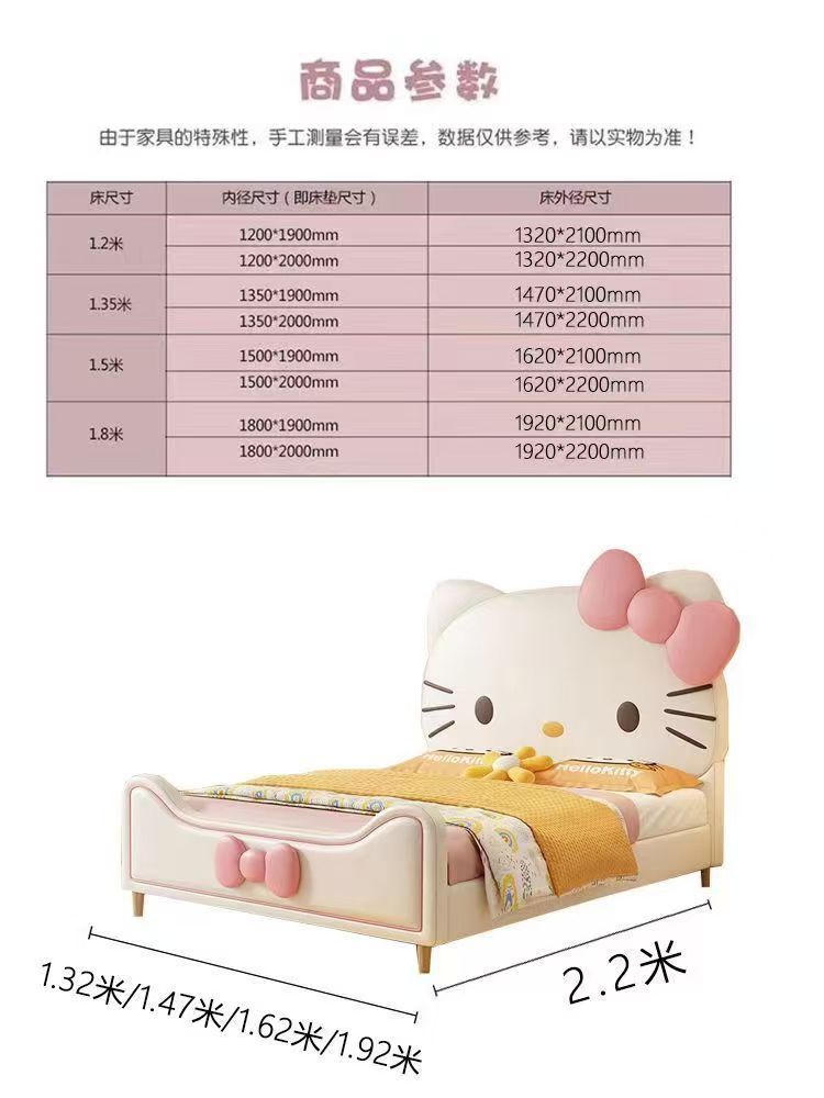 어린이 침대 헬로키티 공주 침대 소녀 가죽 침대 1.5 m 홈 침실 간단한 1.2m 싱글 침대스토어 가기