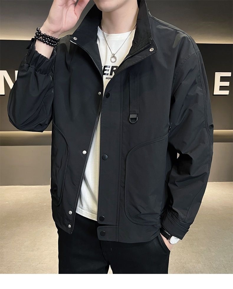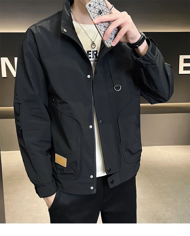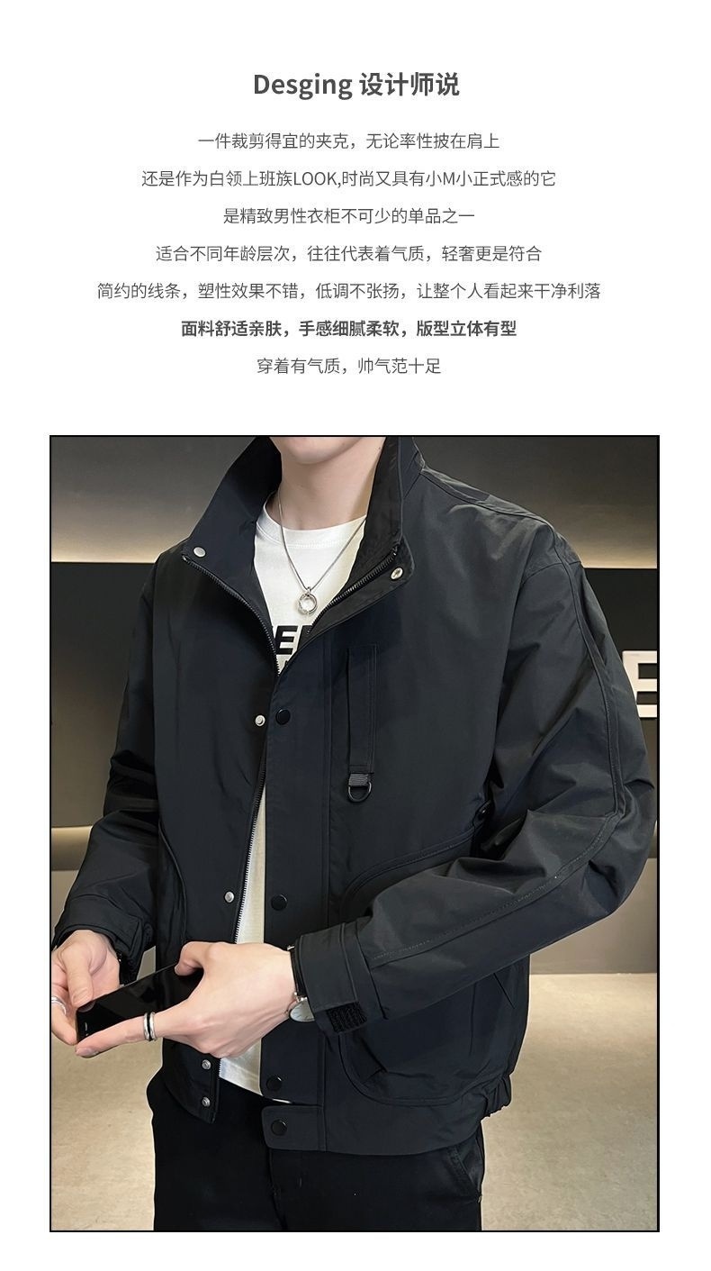 남성 봄과 가을 코트 2024 새로운 야외 캐주얼 트렌디 브랜드 유행 단색 칼라 짧은 청소년 핸섬 탑스토어 가기