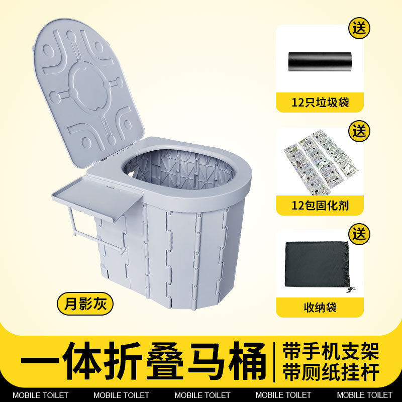 뚜껑이있는 업그레이드 된 통합 휴대용 접이식 화장실 자율 주행 야외 용품 차량 장착 모바일 비상 화장실