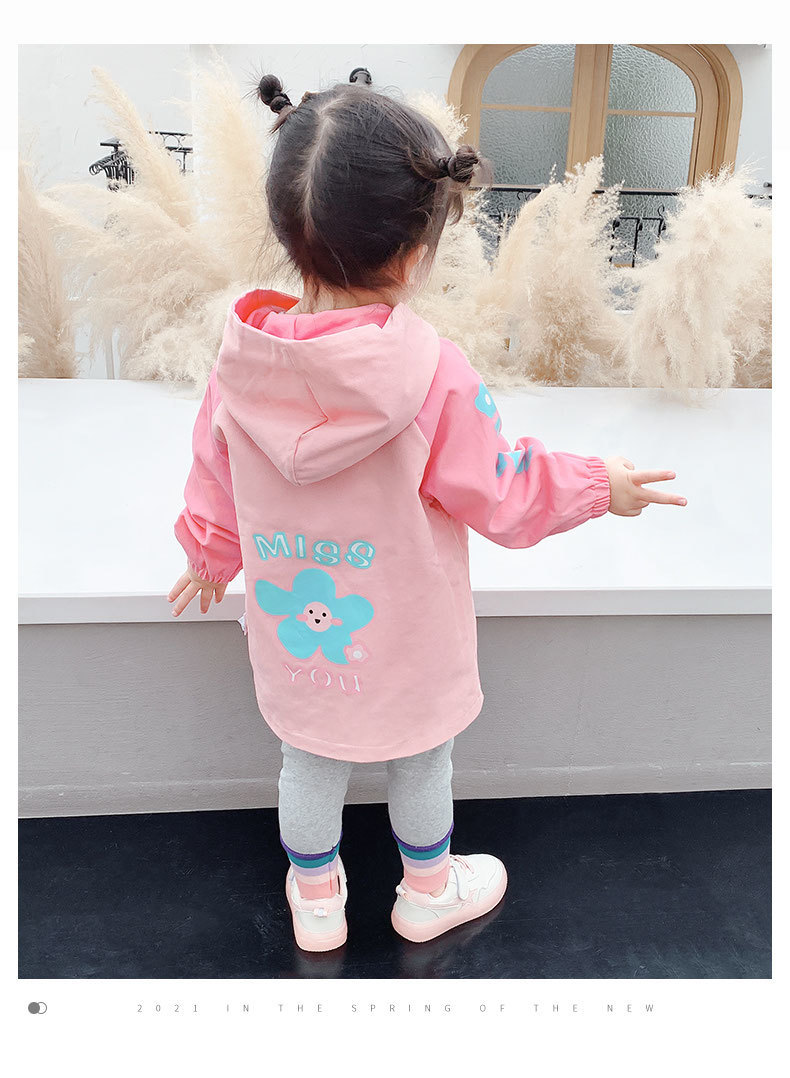 소녀 바람막이 중간 길이 2025 새 봄과 가을 어린이 한국 스타일 탑 어린이 서양식 아기 소녀의 가을 코트스토어 가기