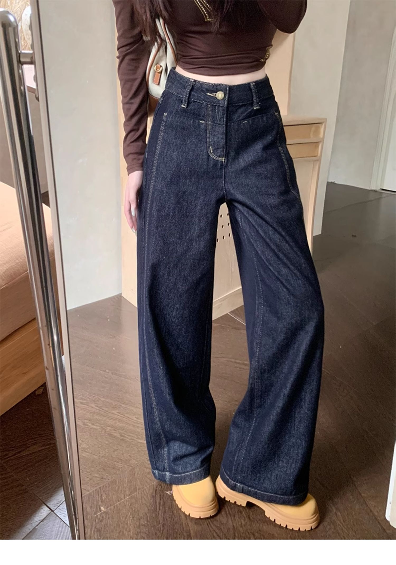 플러스 사이즈 레트로 아메리칸 청바지 여성의 봄과 가을 2025 새로운 통통녀 느슨한 높은 허리 슬리밍 스트레이트 레그 와이드 레그 팬츠스토어 가기