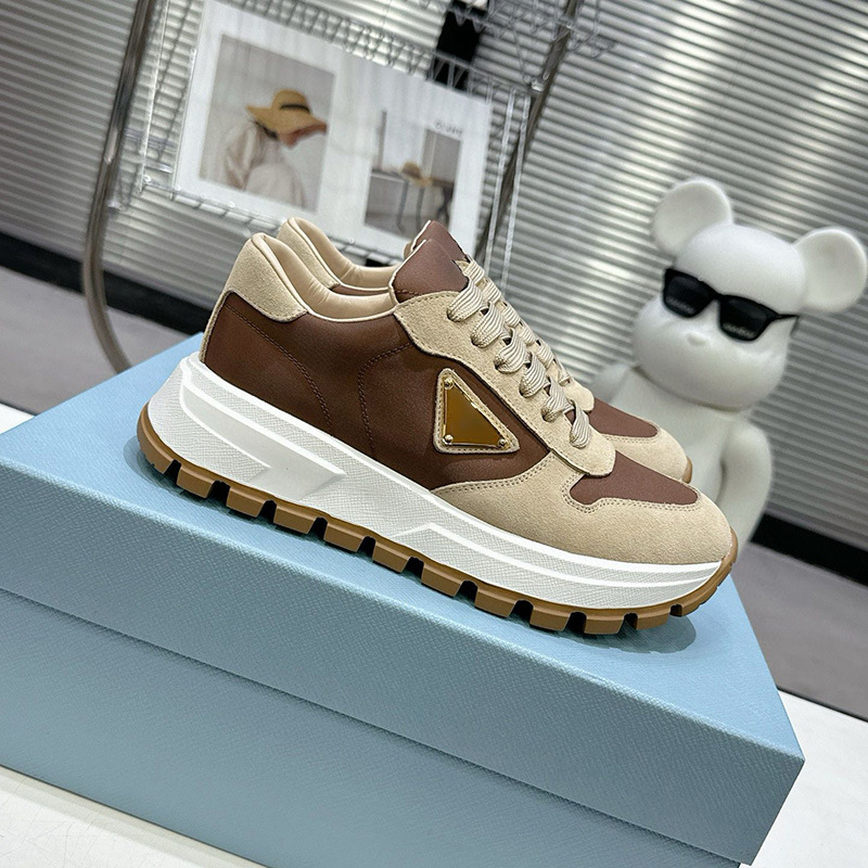 재고 P 운동화 새로운 삼각형 표준 캐주얼 가죽 레이스 낮은 탑 기어 두꺼운 바닥 남자 국경 대외 무역