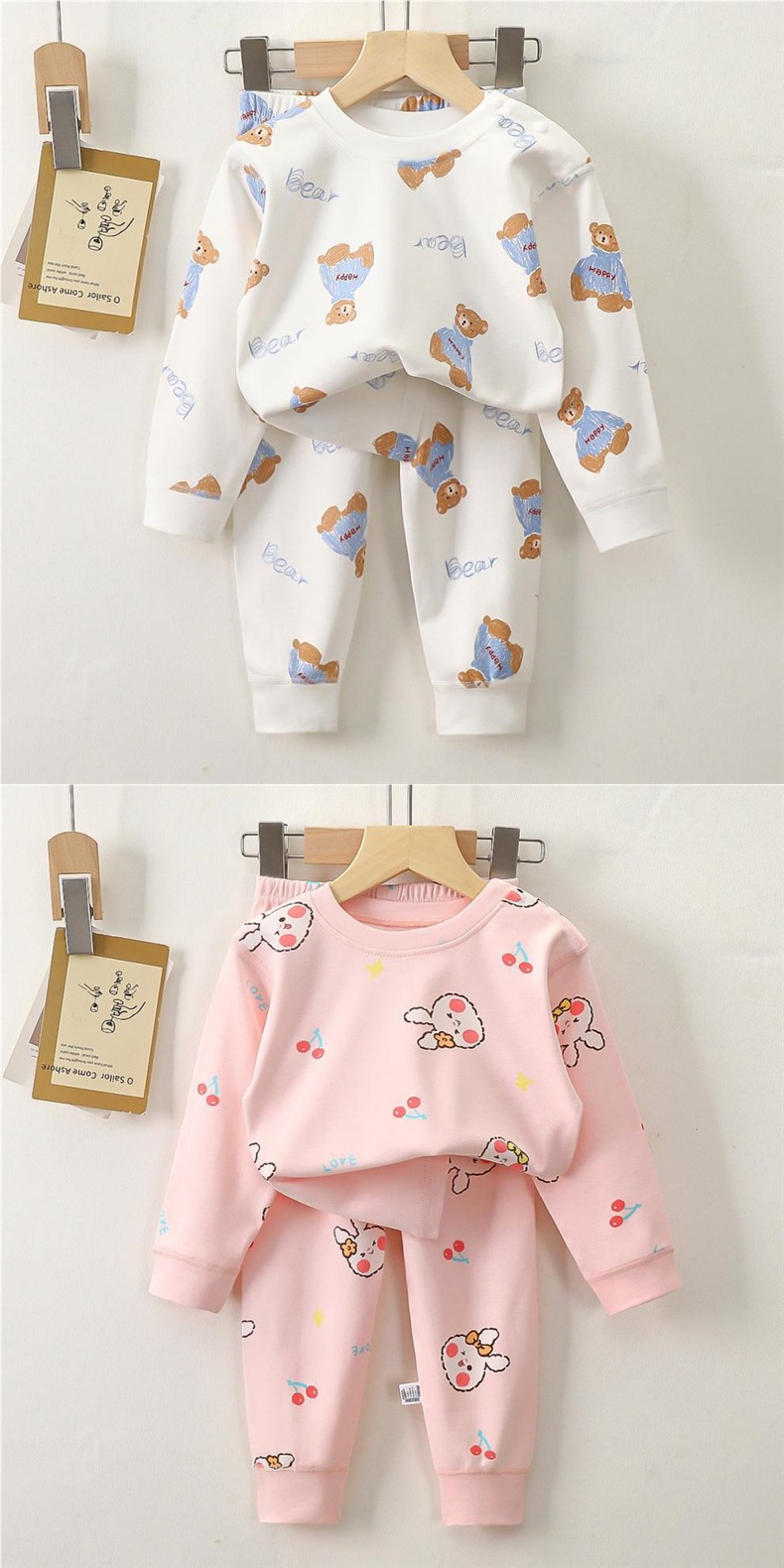 소년 소녀를위한 양면 샌딩 열 속옷을 세트 어린이 뼈없는 면 가을 옷과 바지 홈 의류 세트 패션