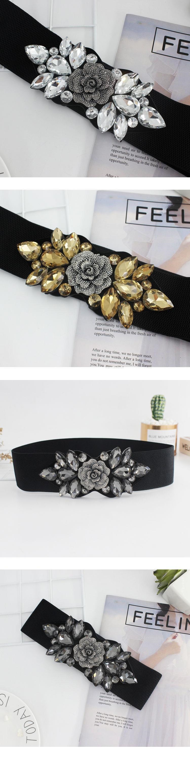 유럽과 미국의 국경 여성 로즈 허리 씰 다이아몬드 장식 스커트 탑 탄성 벨트 블랙 와이드 스커트 벨트스토어 가기