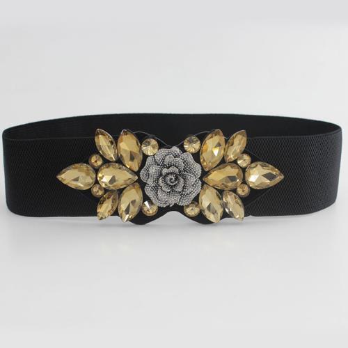 유럽과 미국의 국경 여성 로즈 허리 씰 다이아몬드 장식 스커트 탑 탄성 벨트 블랙 와이드 스커트 벨트