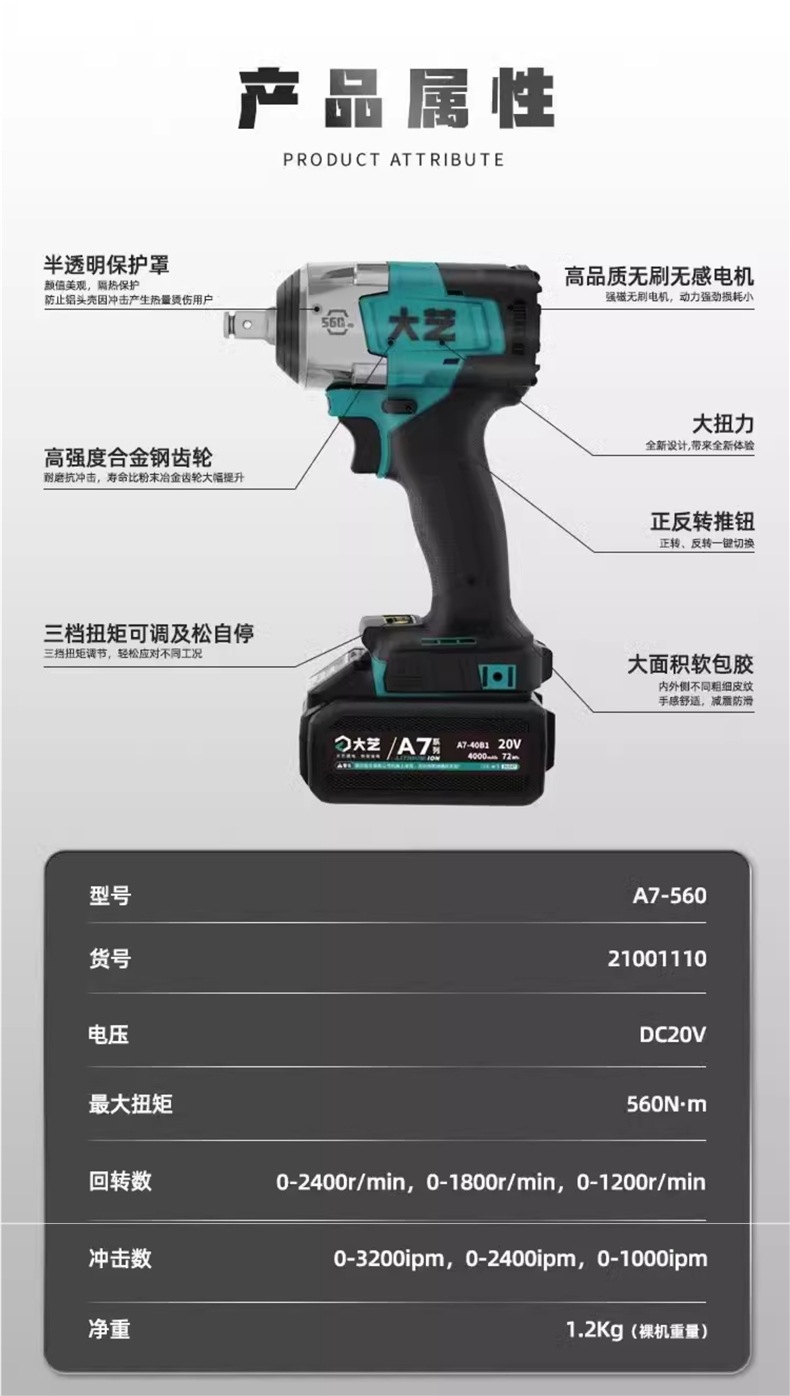 Daoyi 전기 렌치 정품 A7-560 리튬 배터리 대형 토크 전기 바람 대포 충격 렌치 액세서리