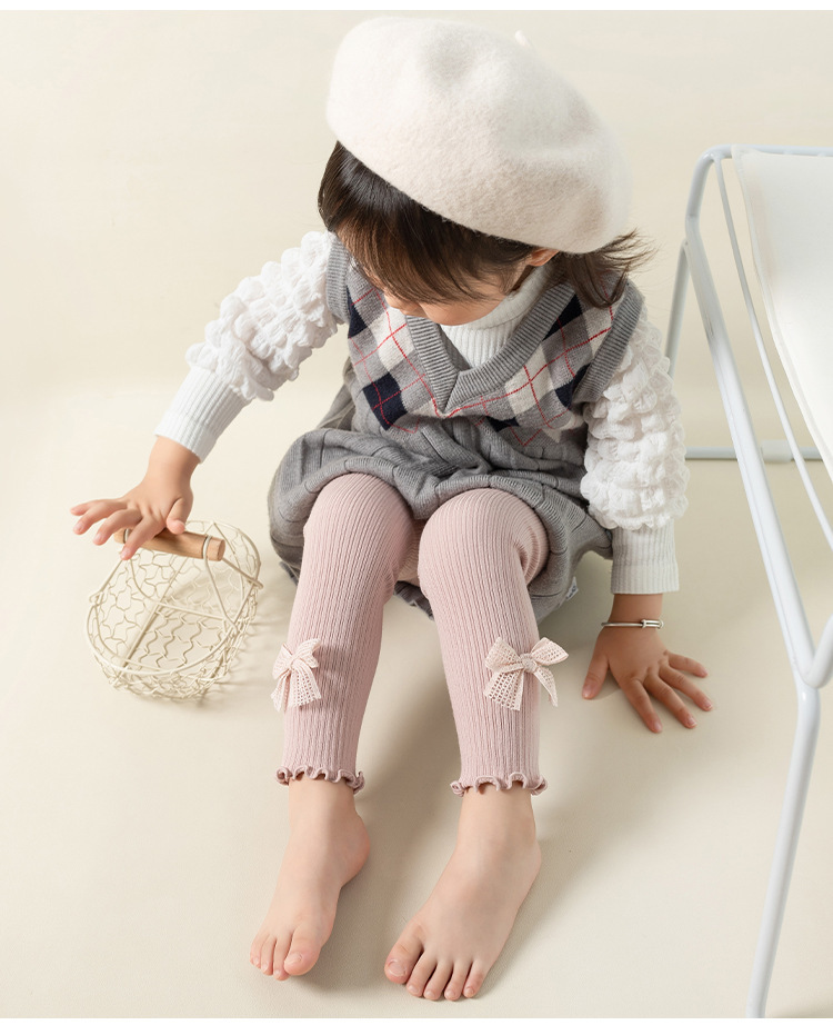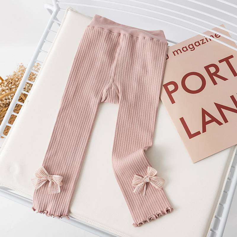 여아 레깅스 봄, 여름, 가을 신상 면 9부 하이웨이스트 아동용 다용도 A형 리본 달콤한 공주 바지