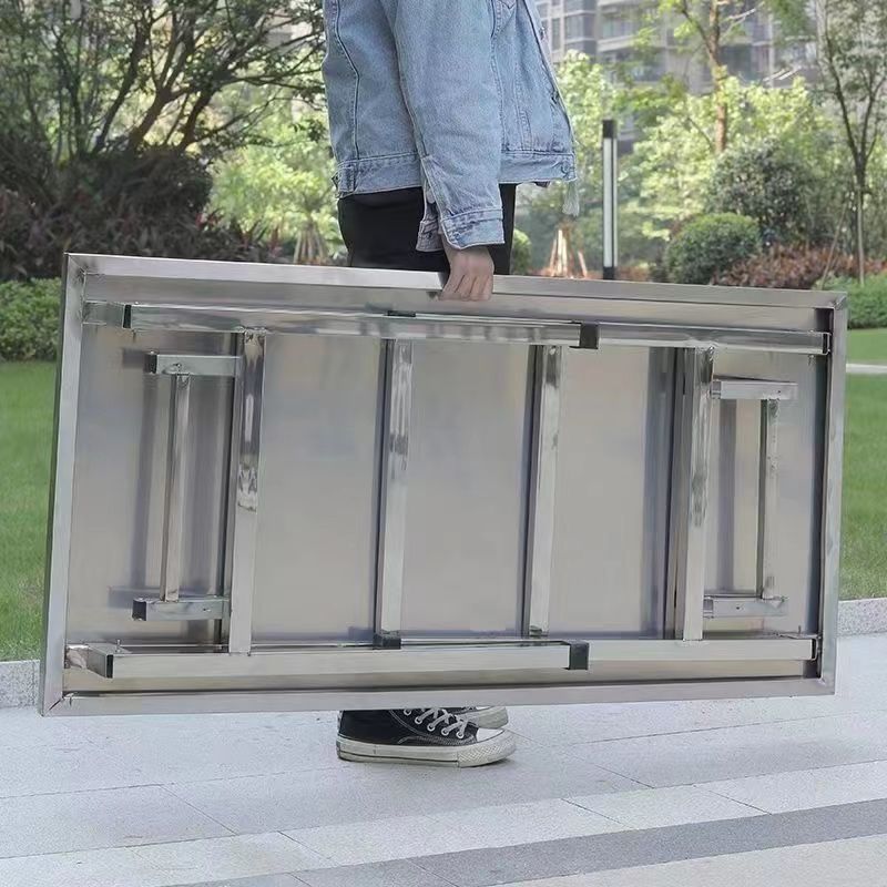 두꺼운 스테인레스 스틸 접이식 테이블 야외 바베큐 캠핑 작은 사각 테이블 상업 레스토랑 스톨 테이블 직사각형 식탁