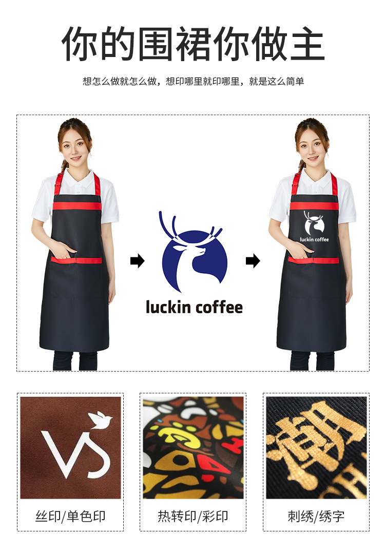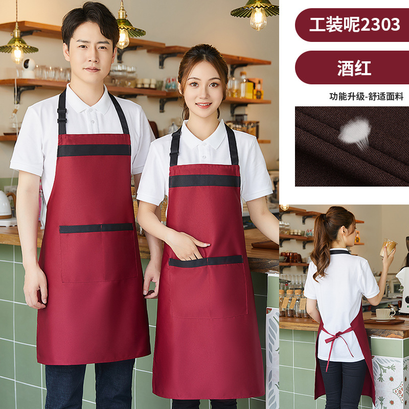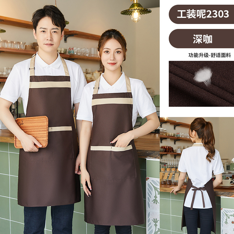 Apron 맞춤형 로고 인쇄 맞춤형 방수 및 내유성 작업복 더러운 주방 커피 케이터링 여성스토어 가기