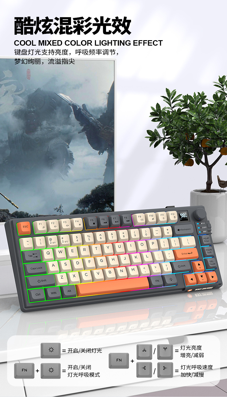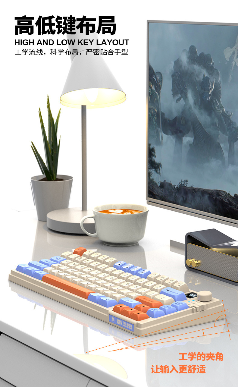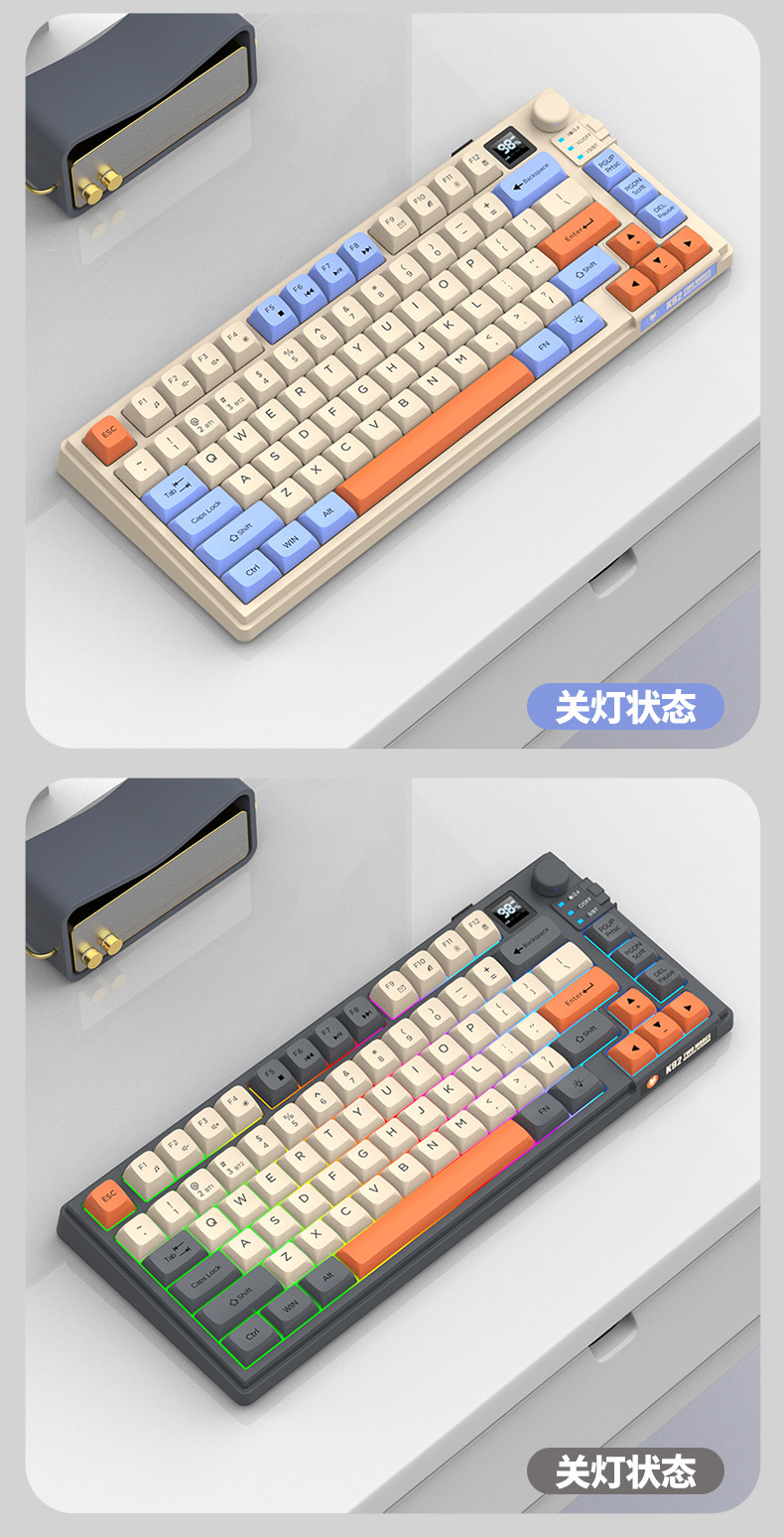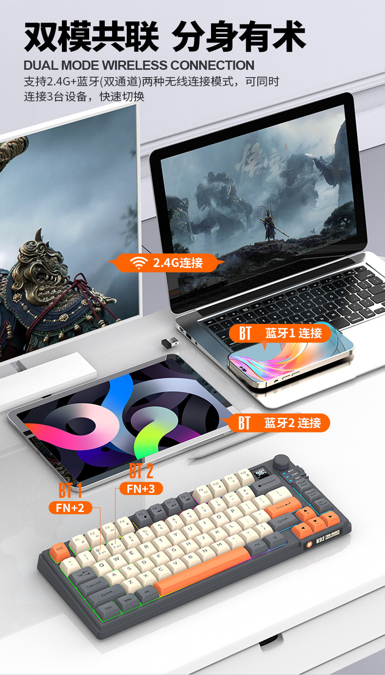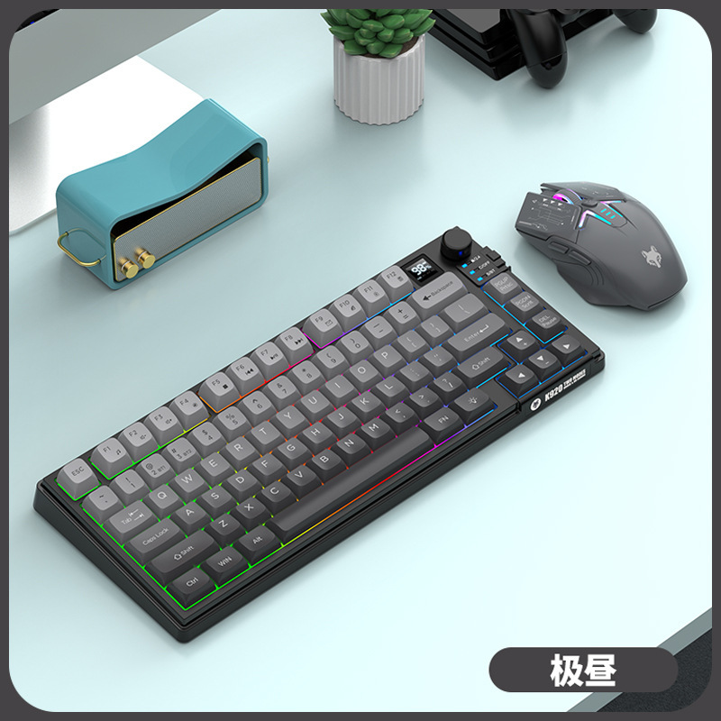 현 실버 폭스 K92 무선 블루투스 듀얼 모드 기계적 그라디언트 키보드 MDA 볼 캡 디스플레이 손잡이 게임 키보드