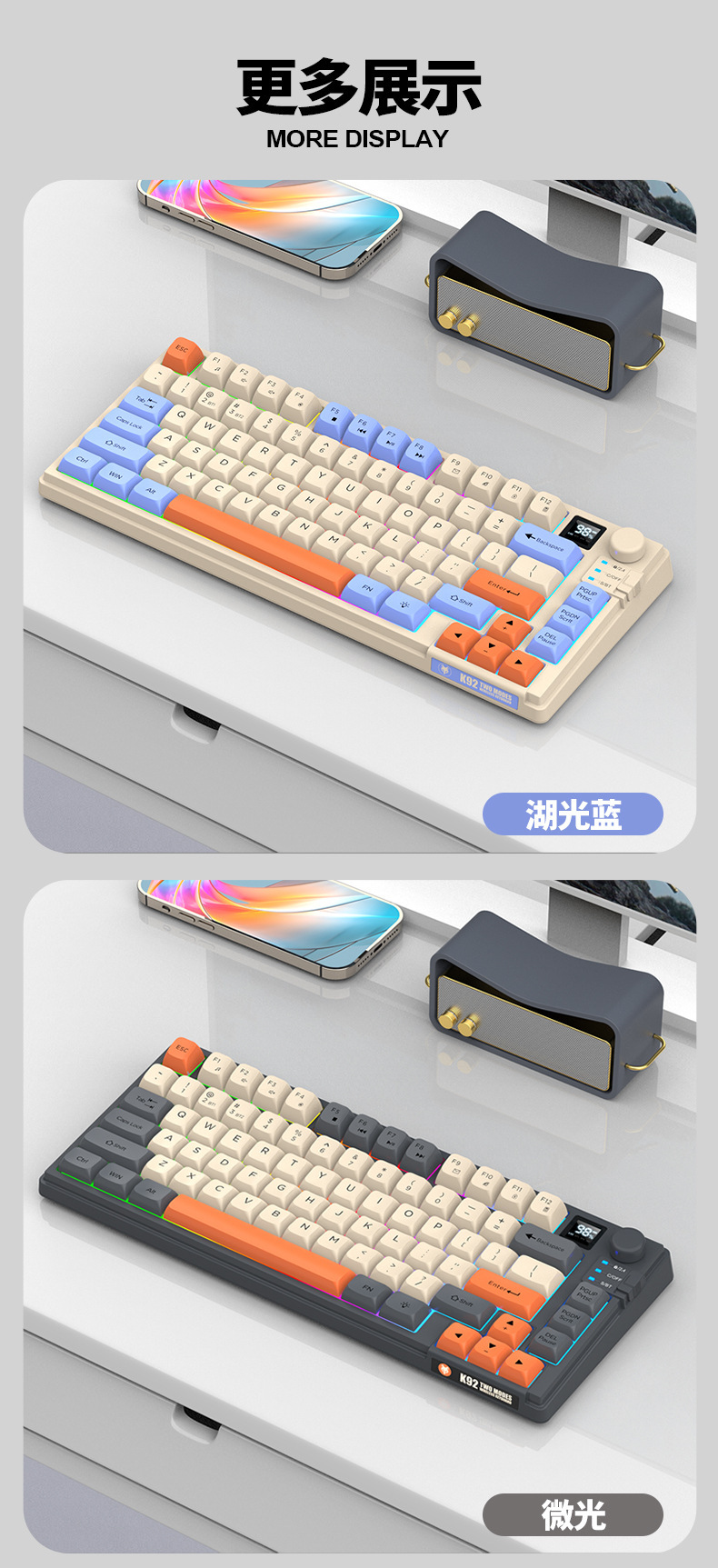 • K92 무선 블루투스 듀얼 모드 레이크 라이트 블루 싱글 키보드