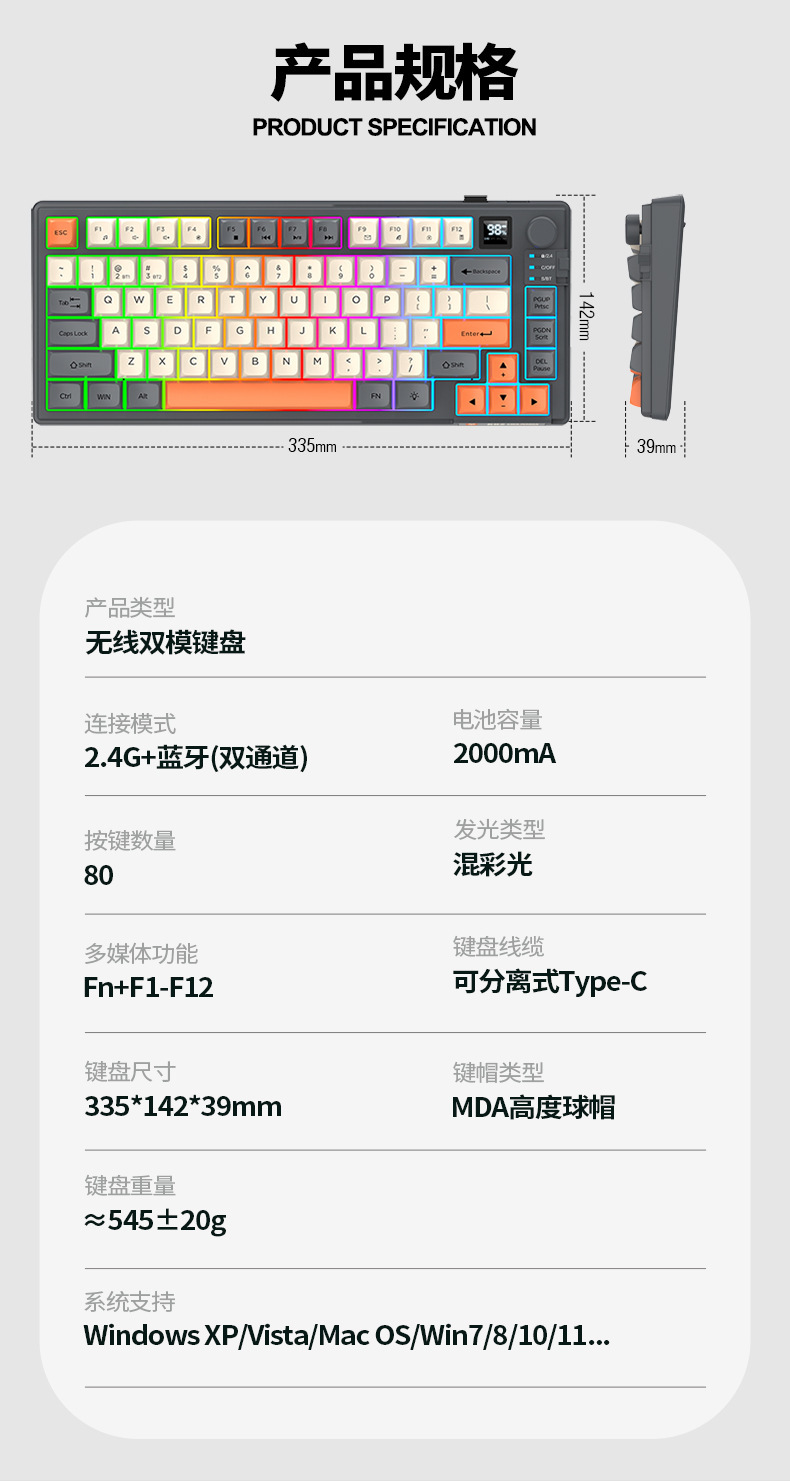 键盘尺寸:33.5*14.2*3.9 CM