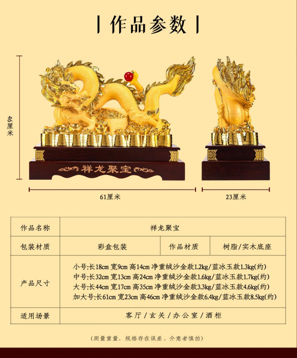 • 대형 벨벳 모래 금 상서로운 용 보물 + 컬러 박스 + 갓 만든