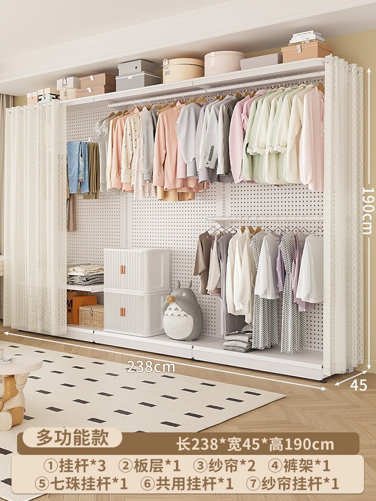 홀 보드 대형 옷장 가정용 침실 선반 금속 철 오픈 간단한 조립 렌탈 룸 스틸 옷장