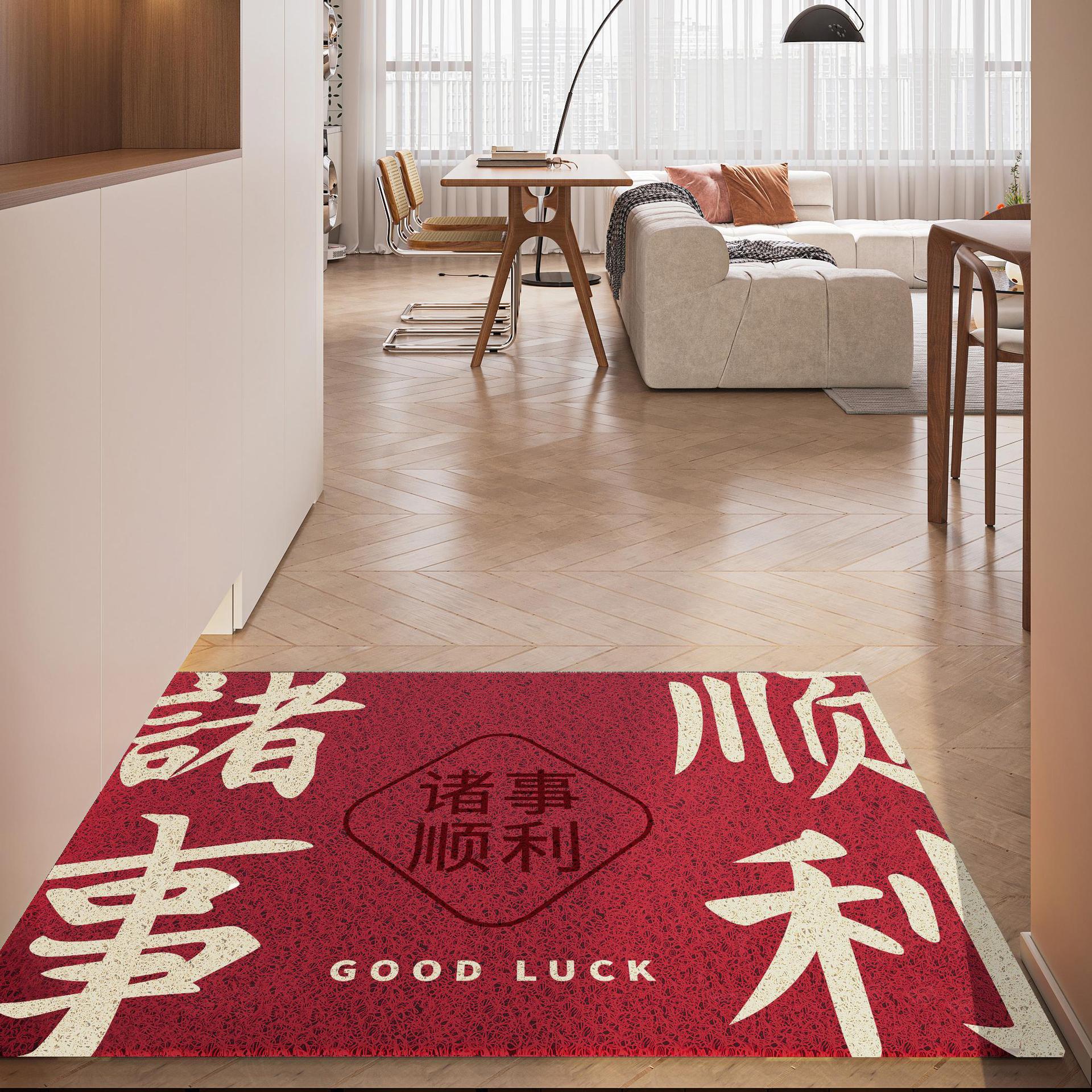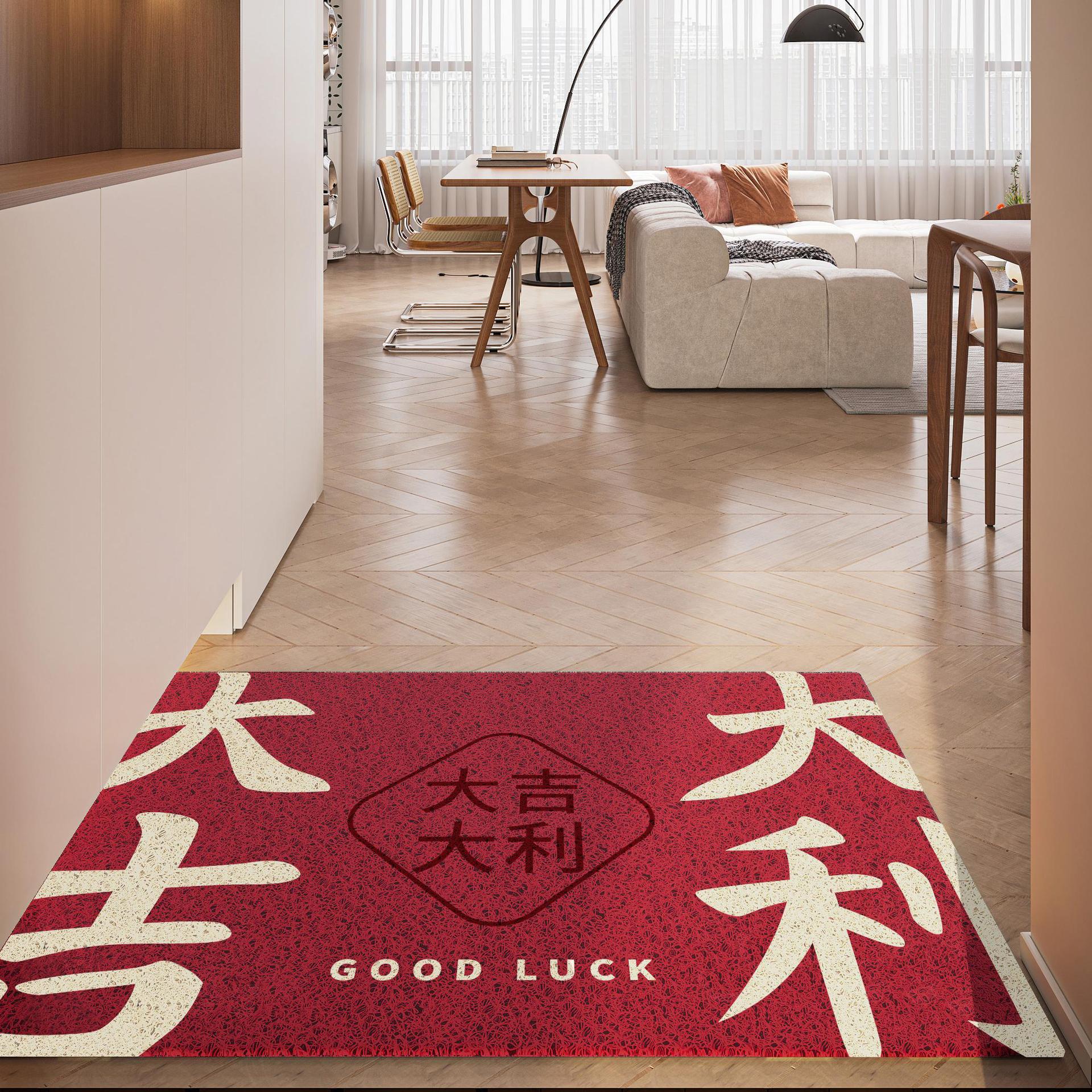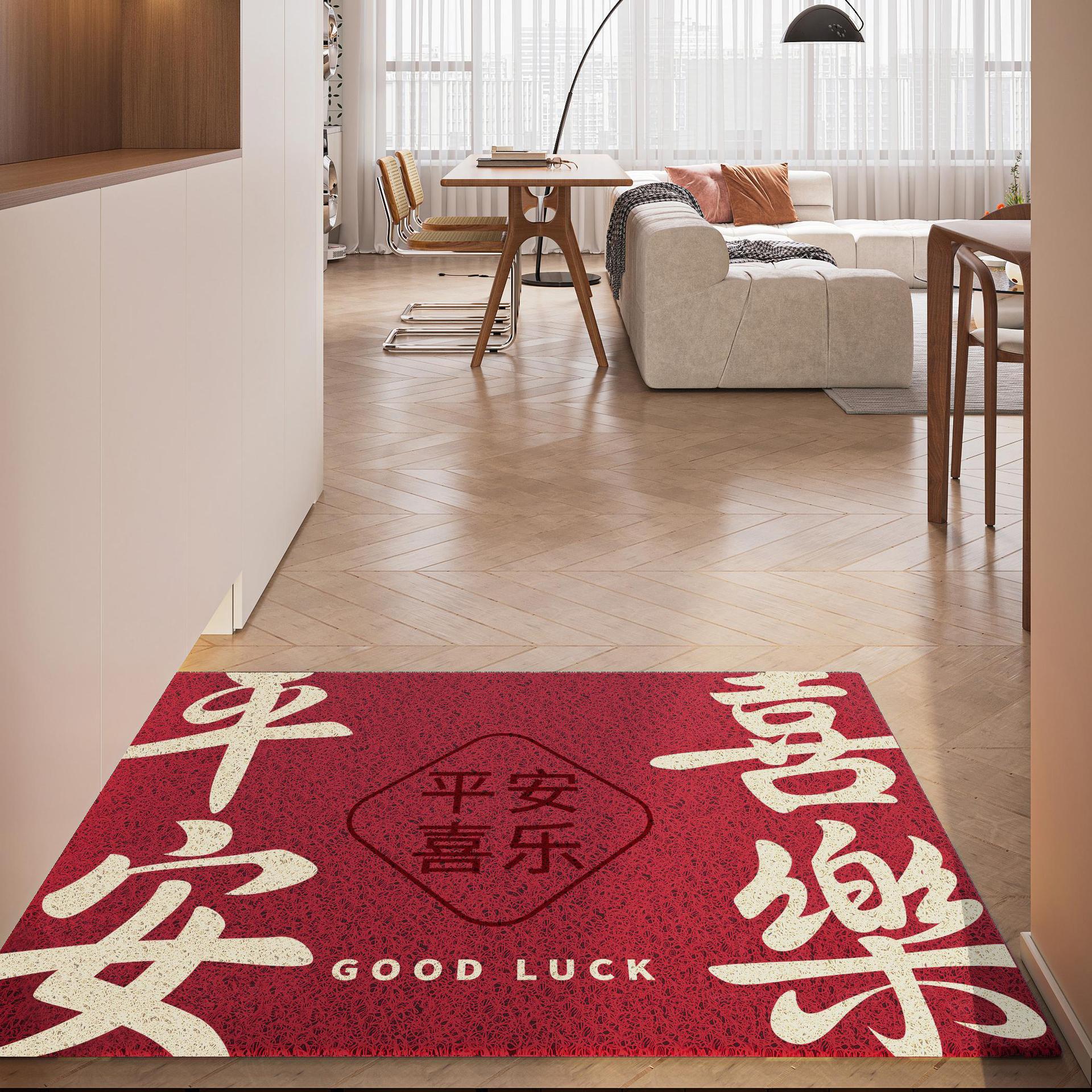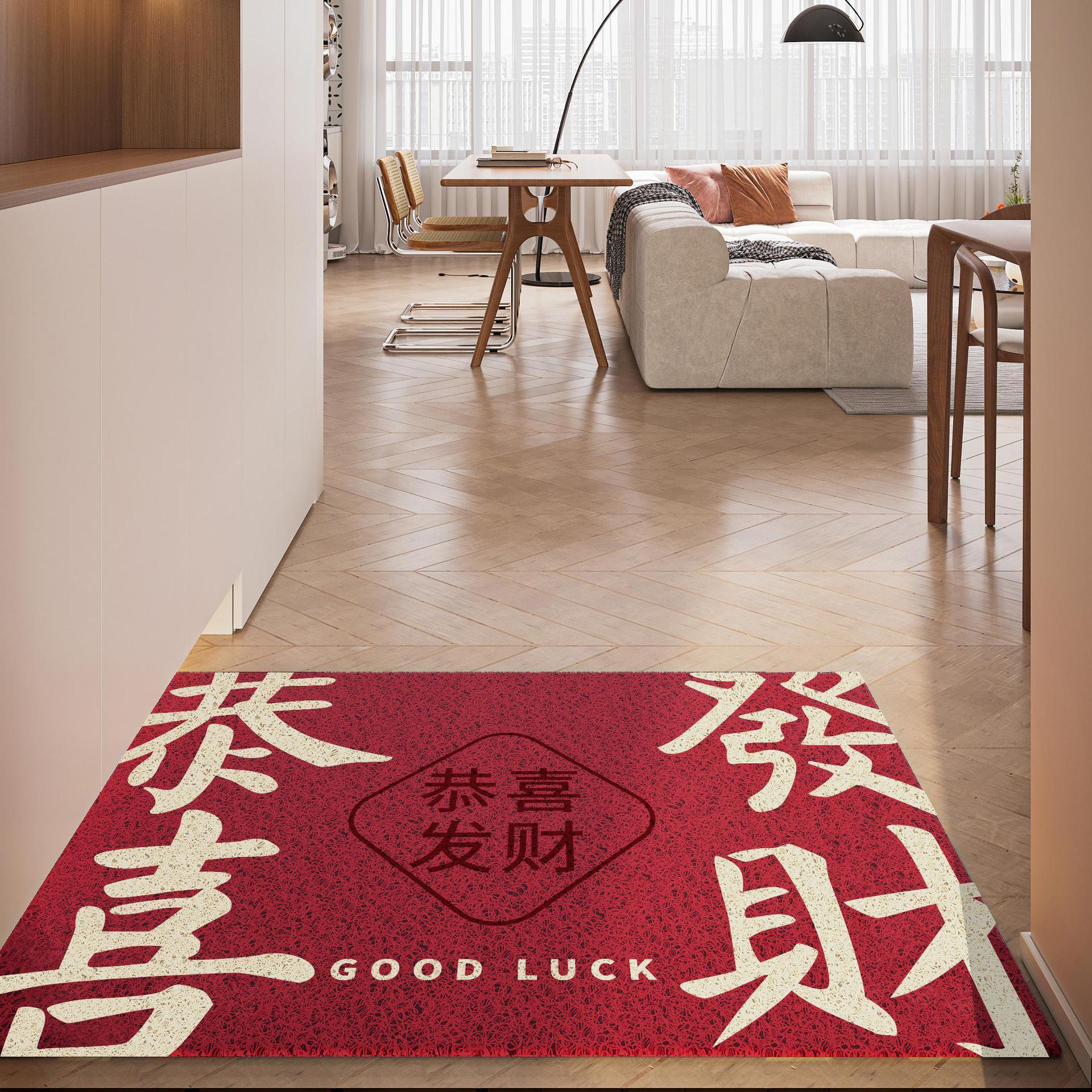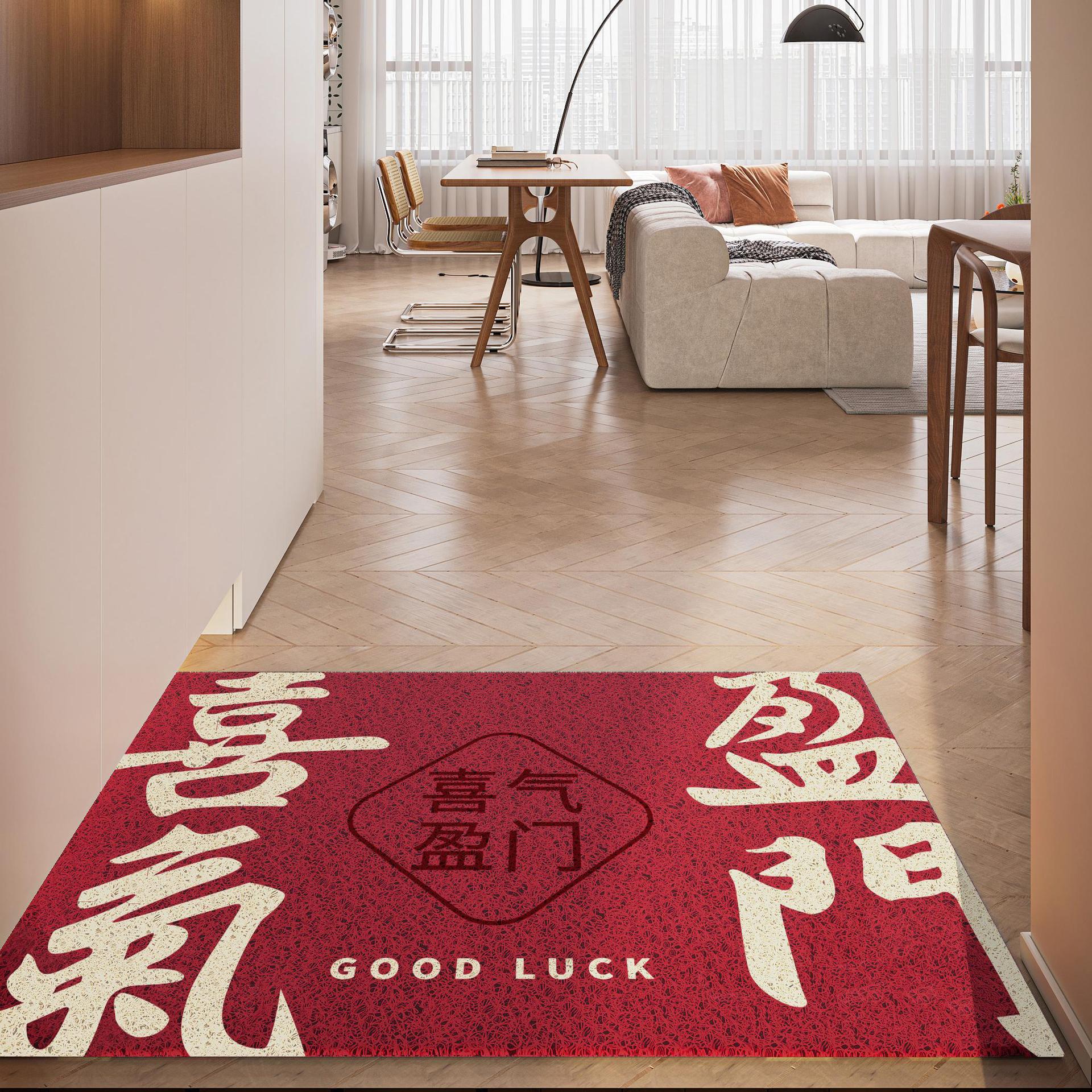 간단하고 축제 입구 안전 실크 링 입구 매트 레드 가정용 내마모성 풋 매트 도어 먼지 제거 미끄럼 방지 매트