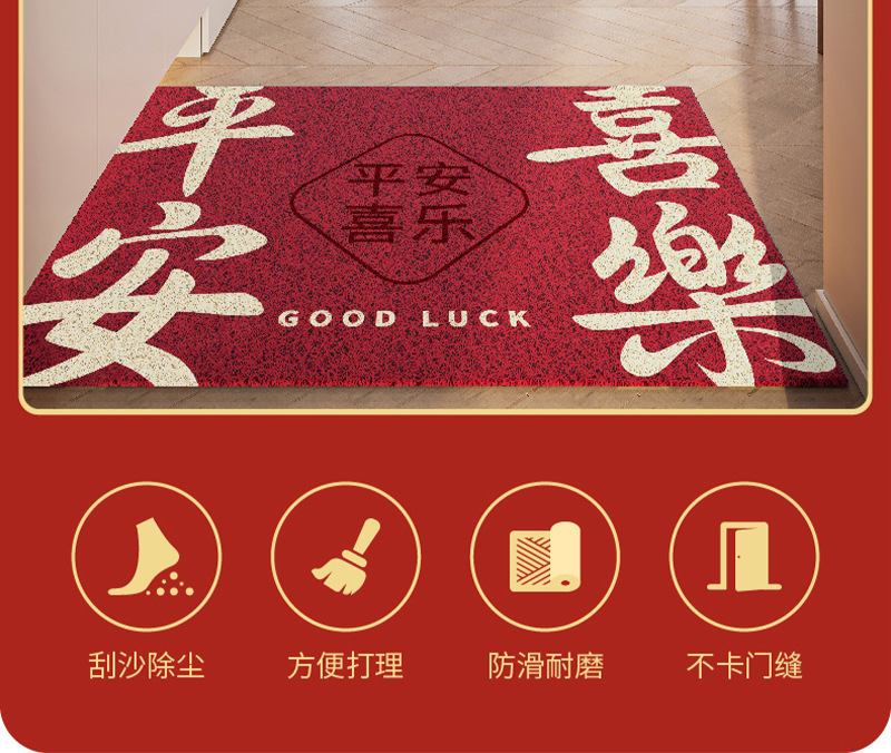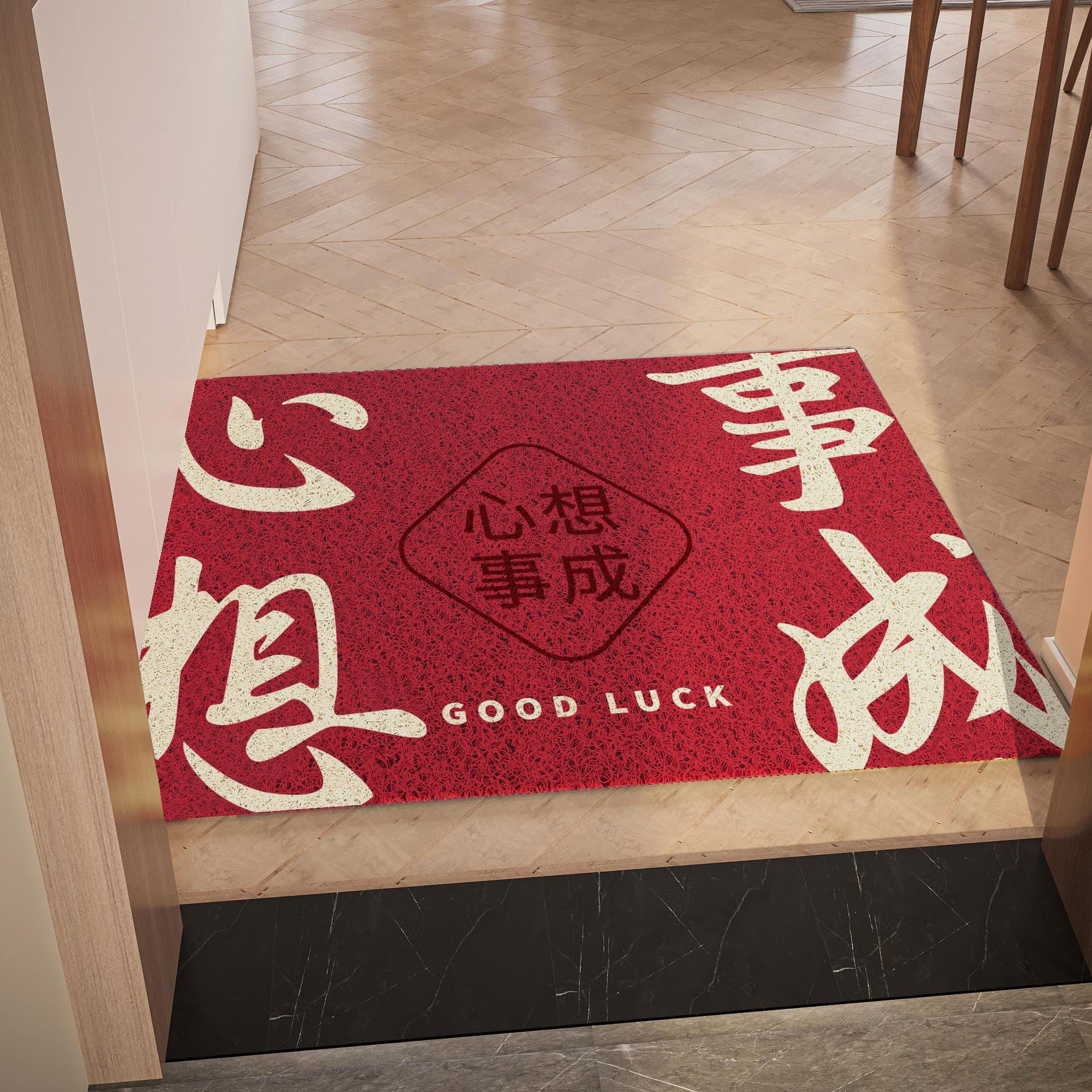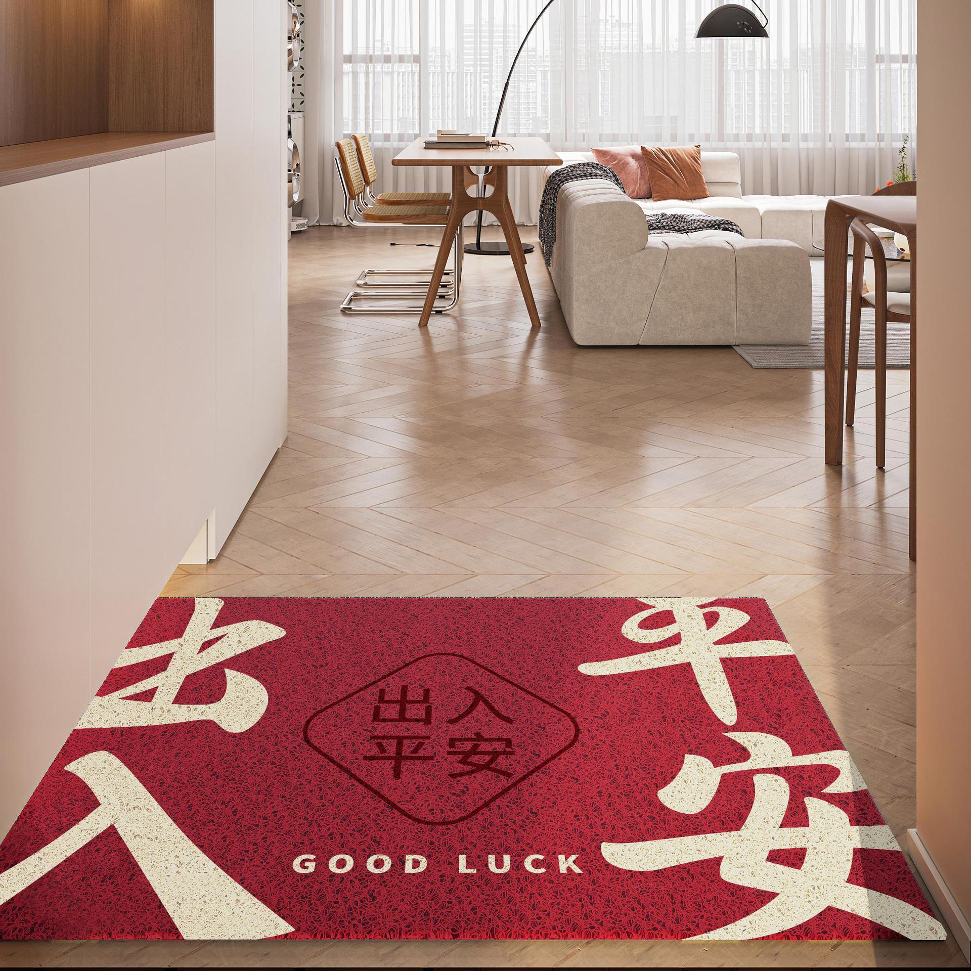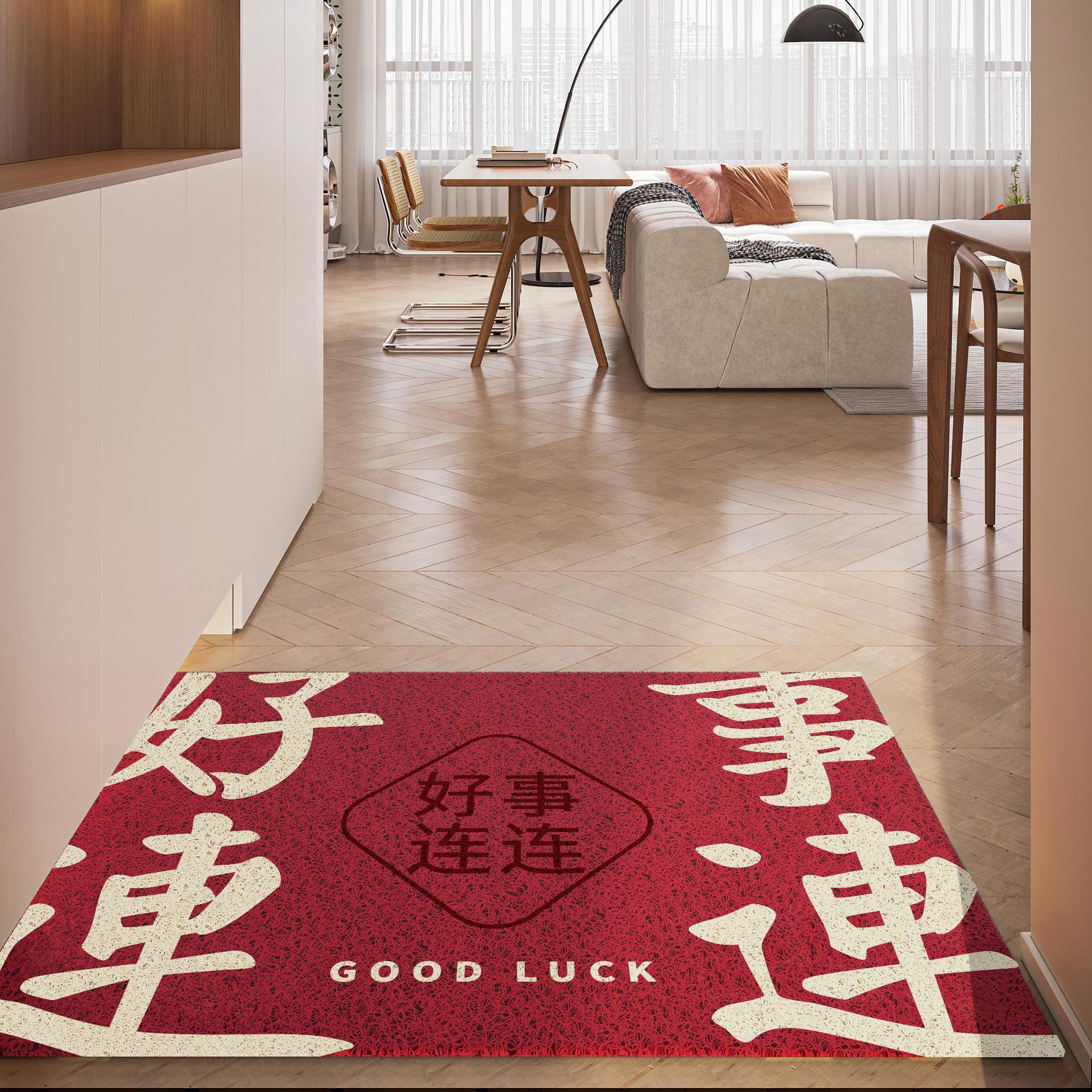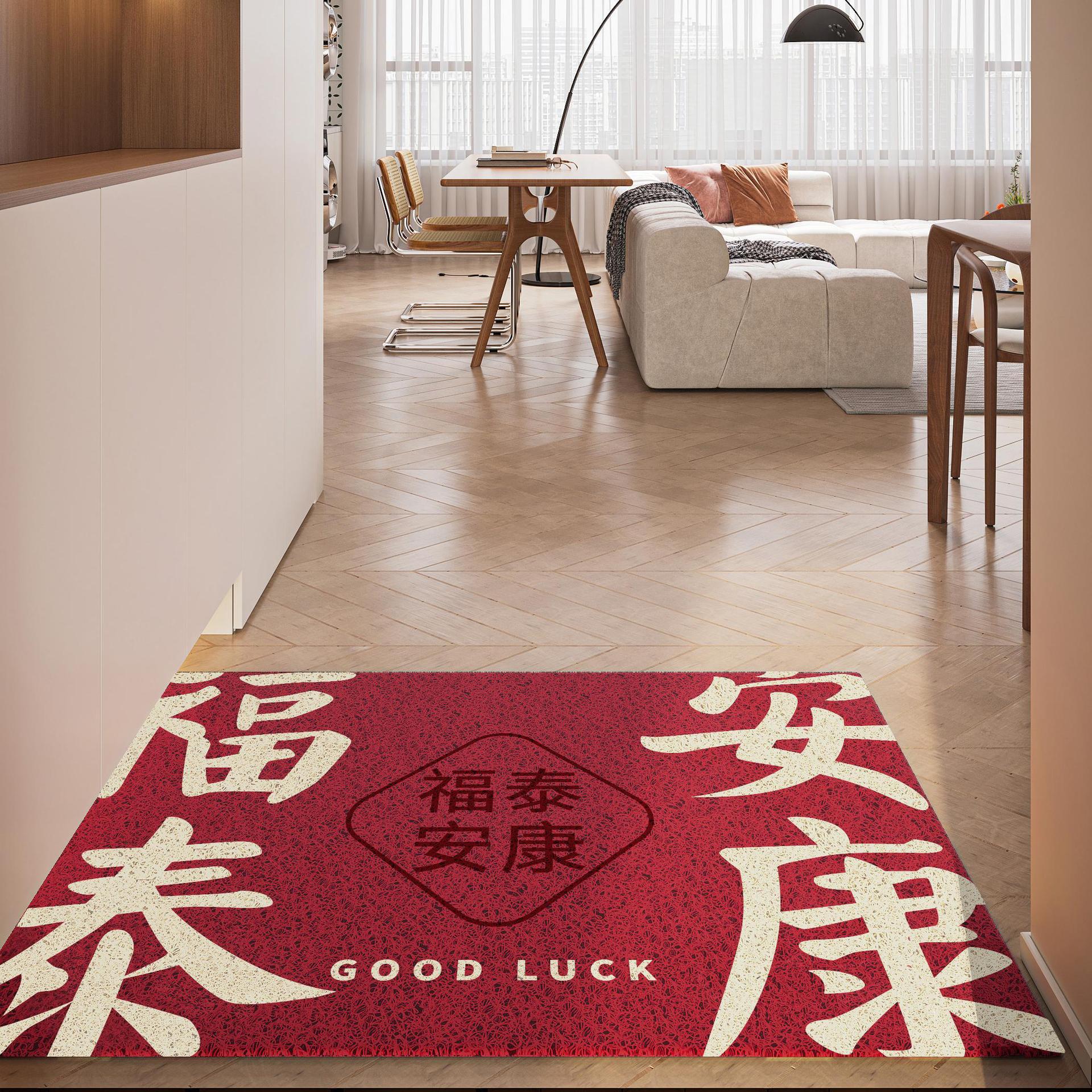 간단하고 축제 입구 안전 실크 링 입구 매트 레드 가정용 내마모성 풋 매트 도어 먼지 제거 미끄럼 방지 매트
