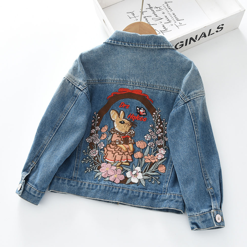 2025春季新款 小兔花朵刺绣女童水洗翻领牛仔外套牛仔服
