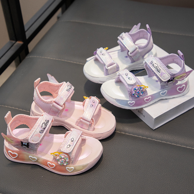 소녀 샌들 부드러운 밑창 어린이 공주 신발 여름 새로운 사이버 유명한 해변 신발 귀여운 부드러운 밑창 소녀 캐주얼 신발스토어 가기
