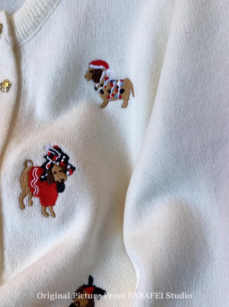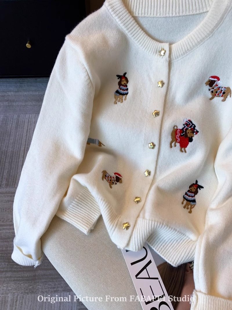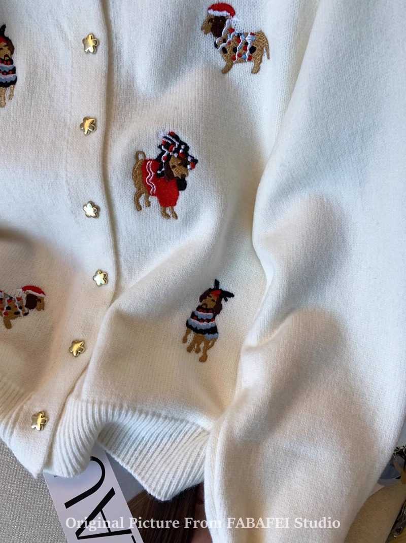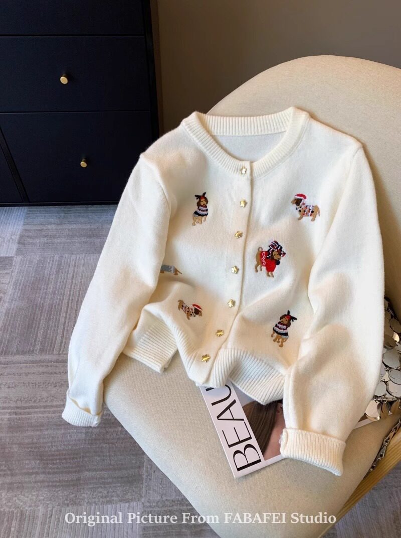 세련된 레트로 크리스마스 레드 강아지 자수 니트 카디건 여성 디자인 센스 5 점 스타 버튼 스웨터 코트 봄과 가을스토어 가기