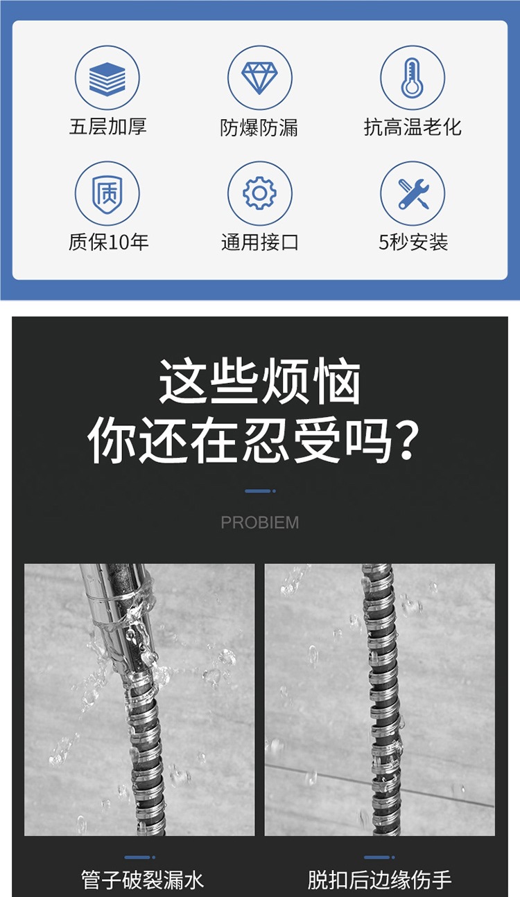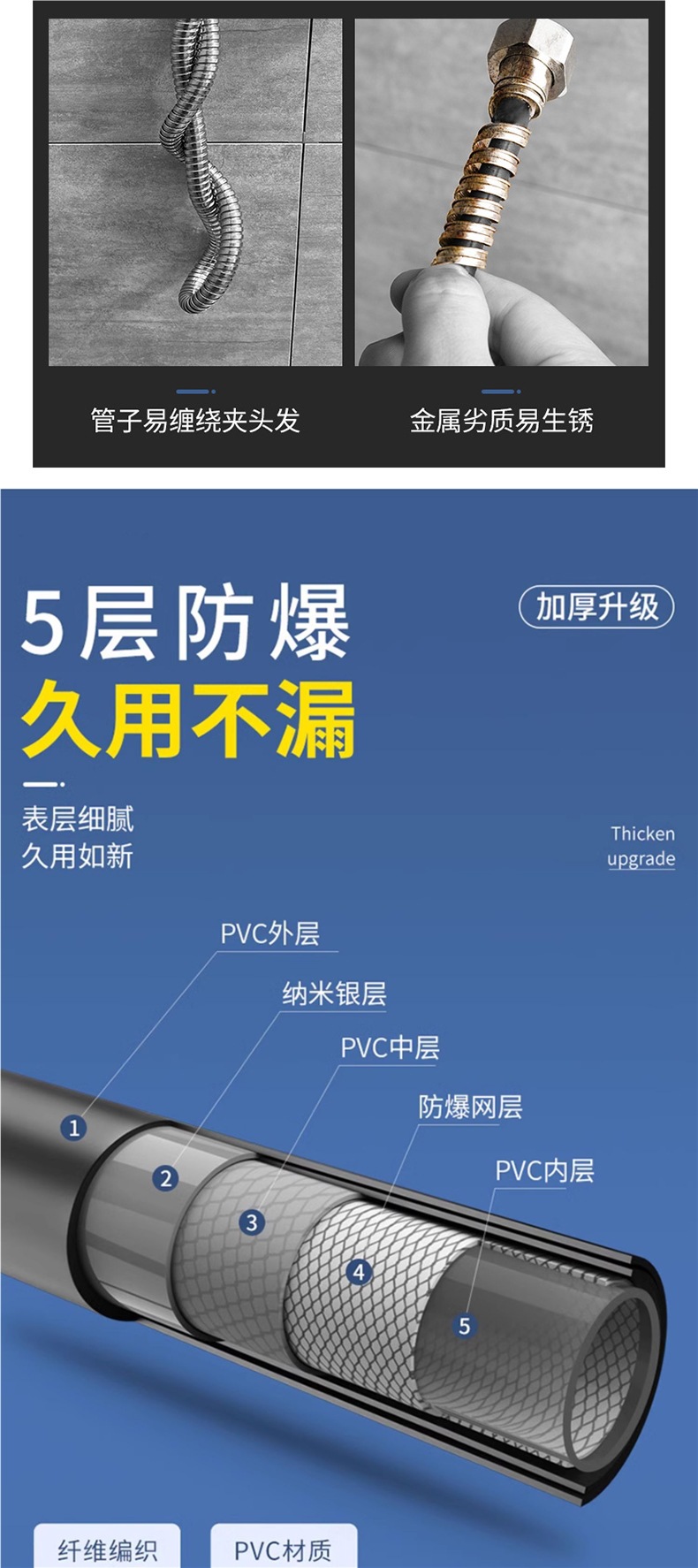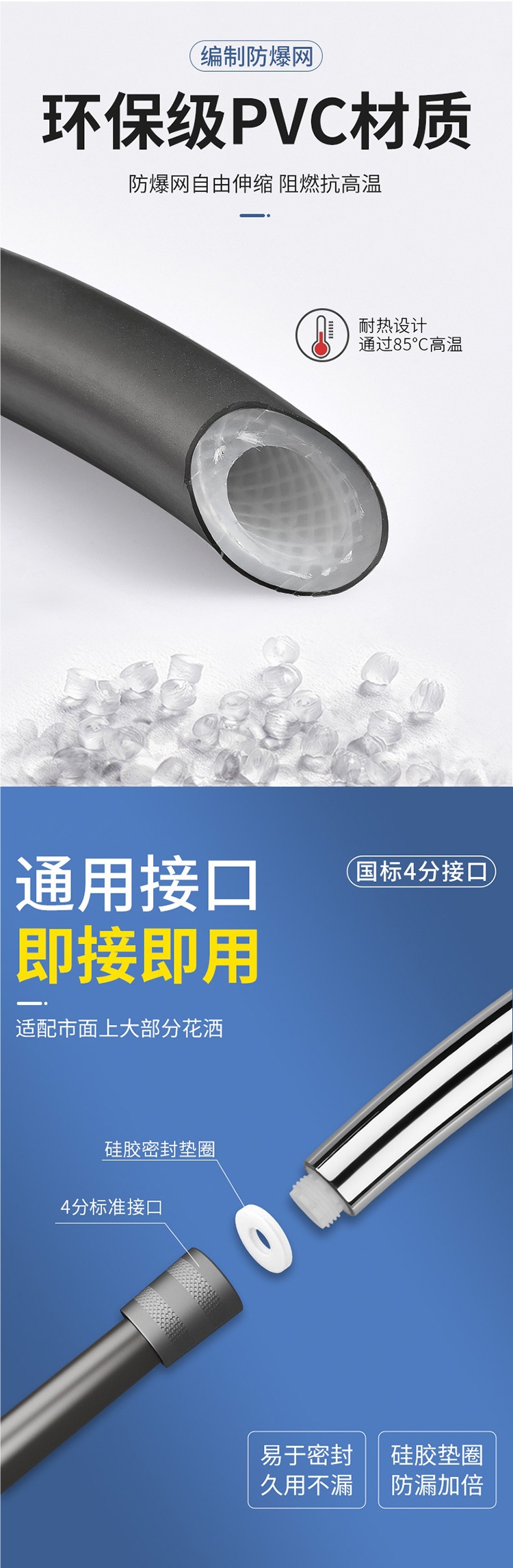 • 1.5m [EPDM 내부관] 은색 스테인레스 스틸 파이프❤이중 방폭형