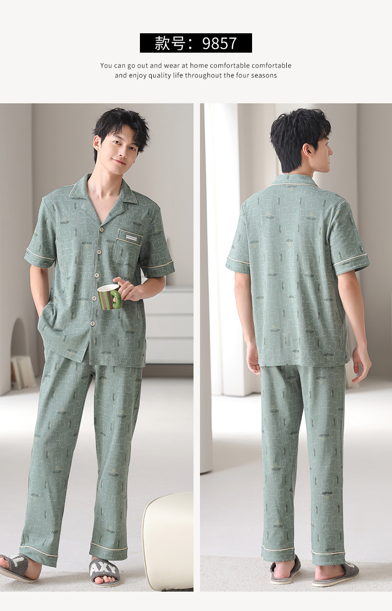 풀업 쿨 코튼 파자마 남자 여름 퓨어 코튼 반팔 바지 소년 플러스 사이즈 하이 엔드 센스 홈 의류 남성 세트스토어 가기
