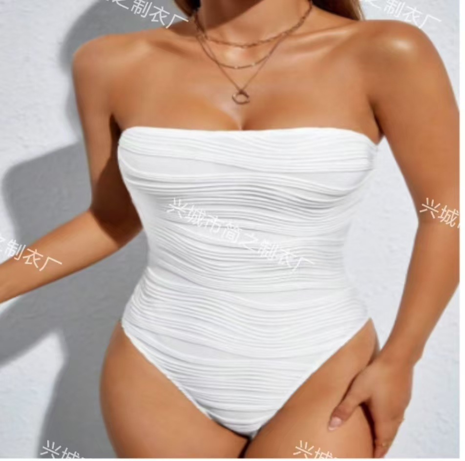 2025 유럽과 미국의 뉴 웨이브 천 로즈 튜브 탑 드로우 스트링 스트랩 스플릿 수영복 비키니 비키니 크로스스토어 가기