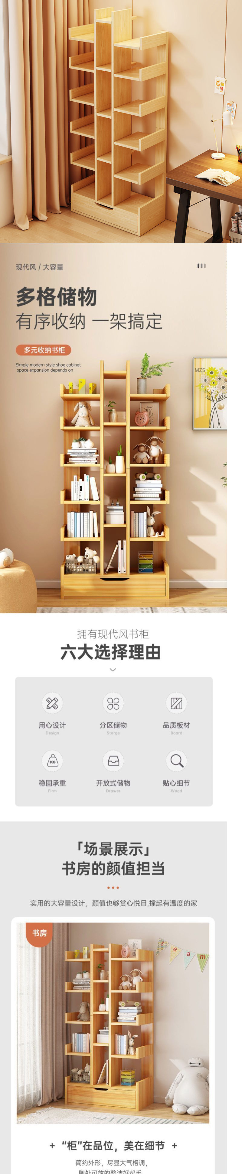 • [업그레이드된 캐비닛 도어] 15단 전원 참나무 색상 51CM