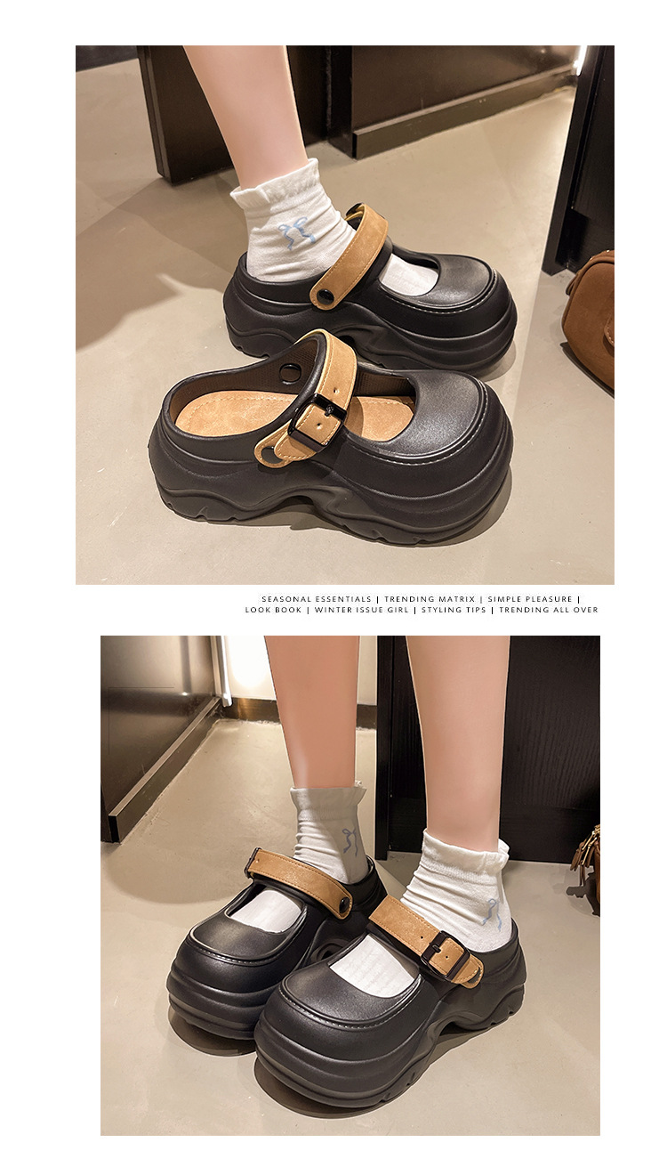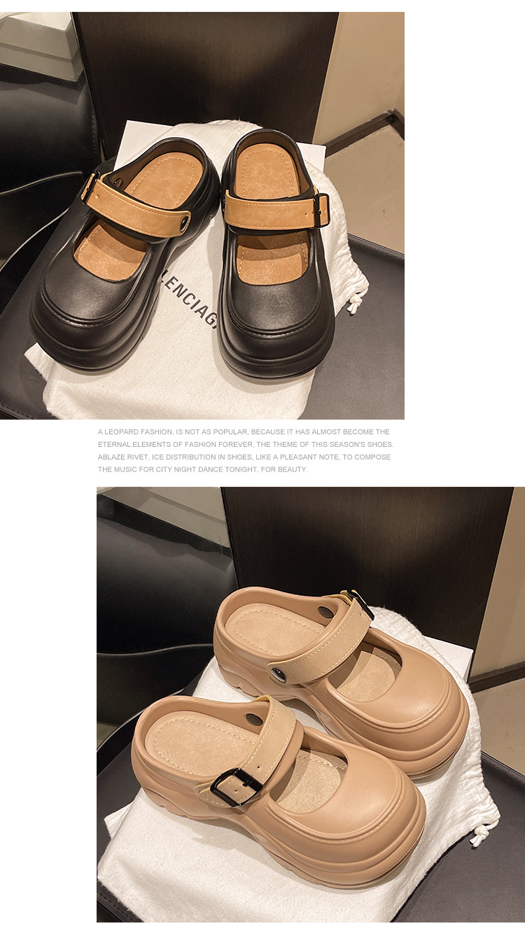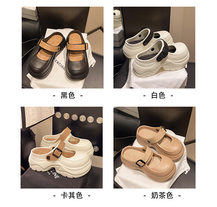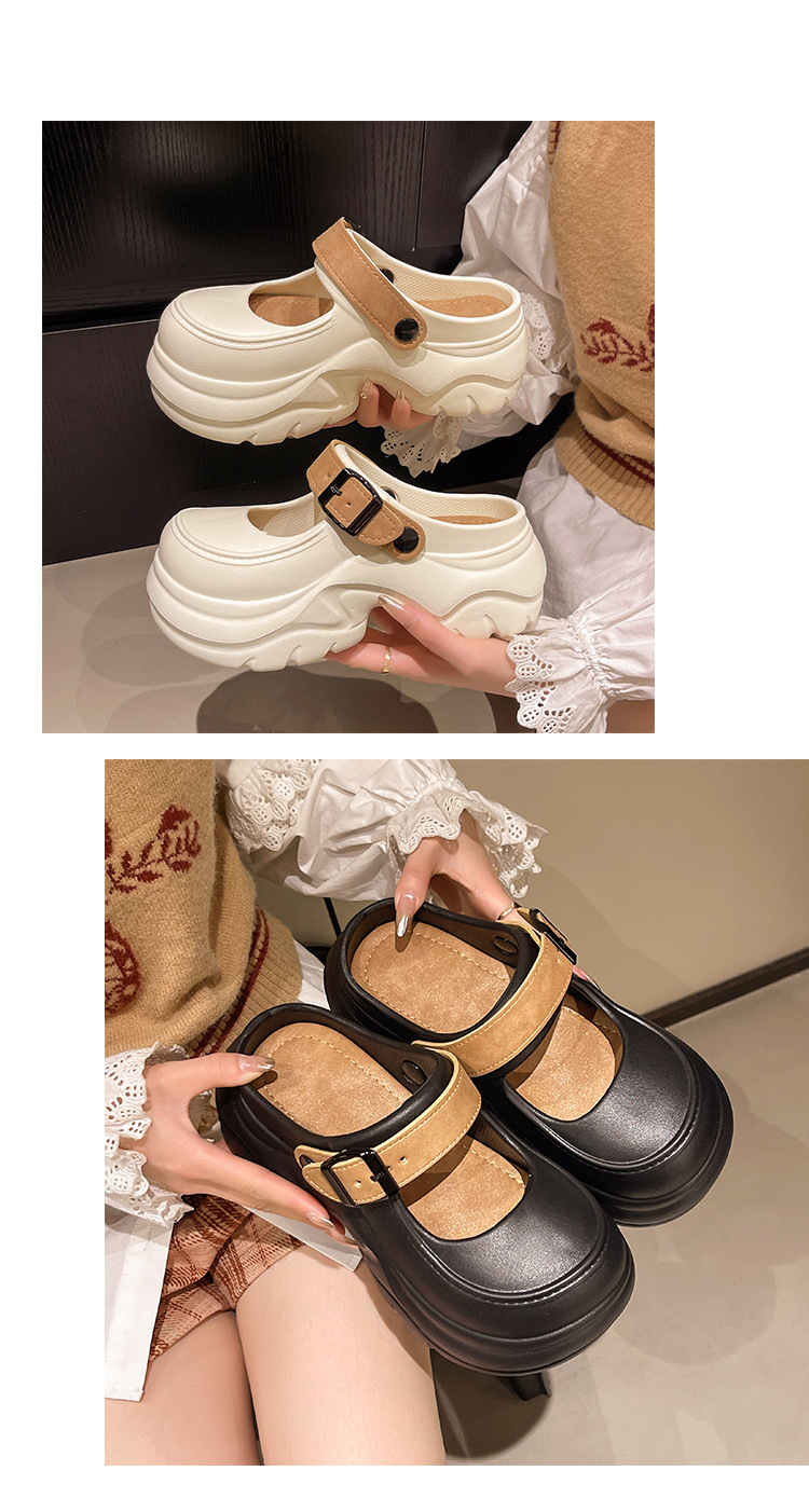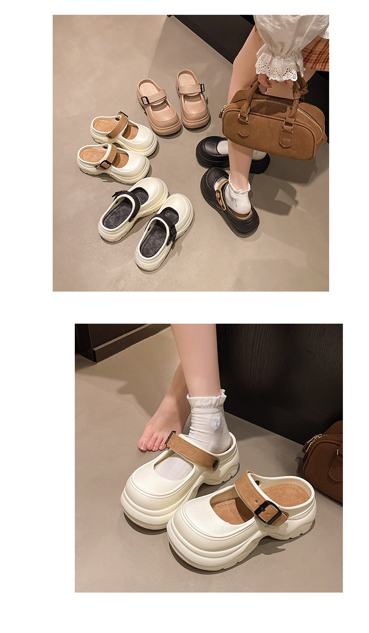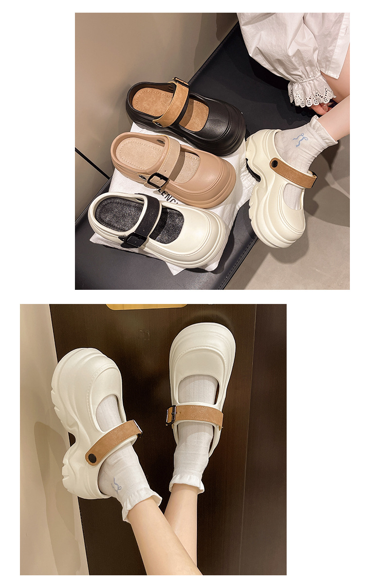 두꺼운 밑창 메리 제인 샌들 2025 악어 신발 새로운 색상 차단 두꺼운 밑창 다목적 겉옷 여성 발가락 슬리퍼 국경스토어 가기