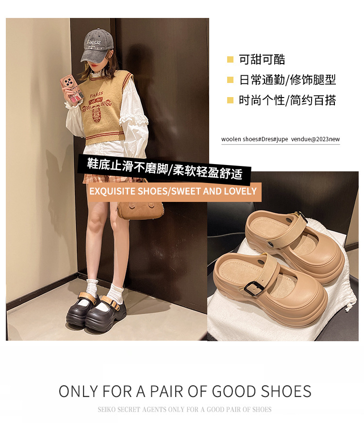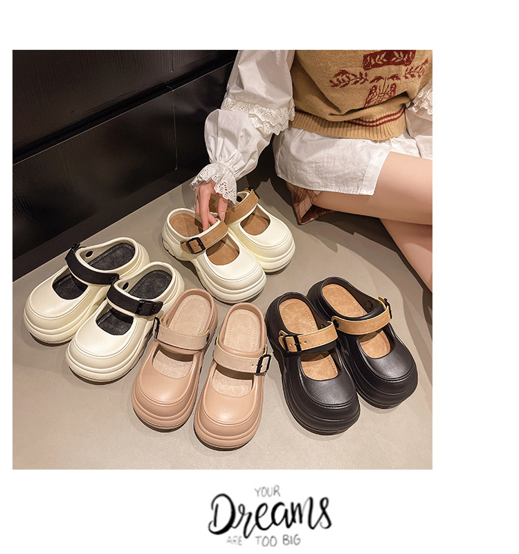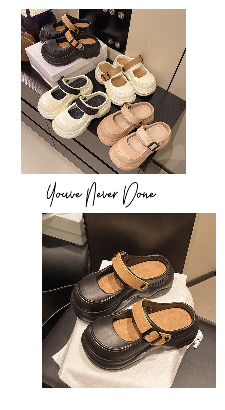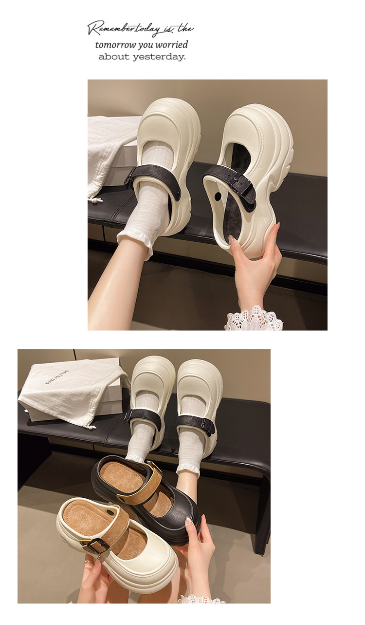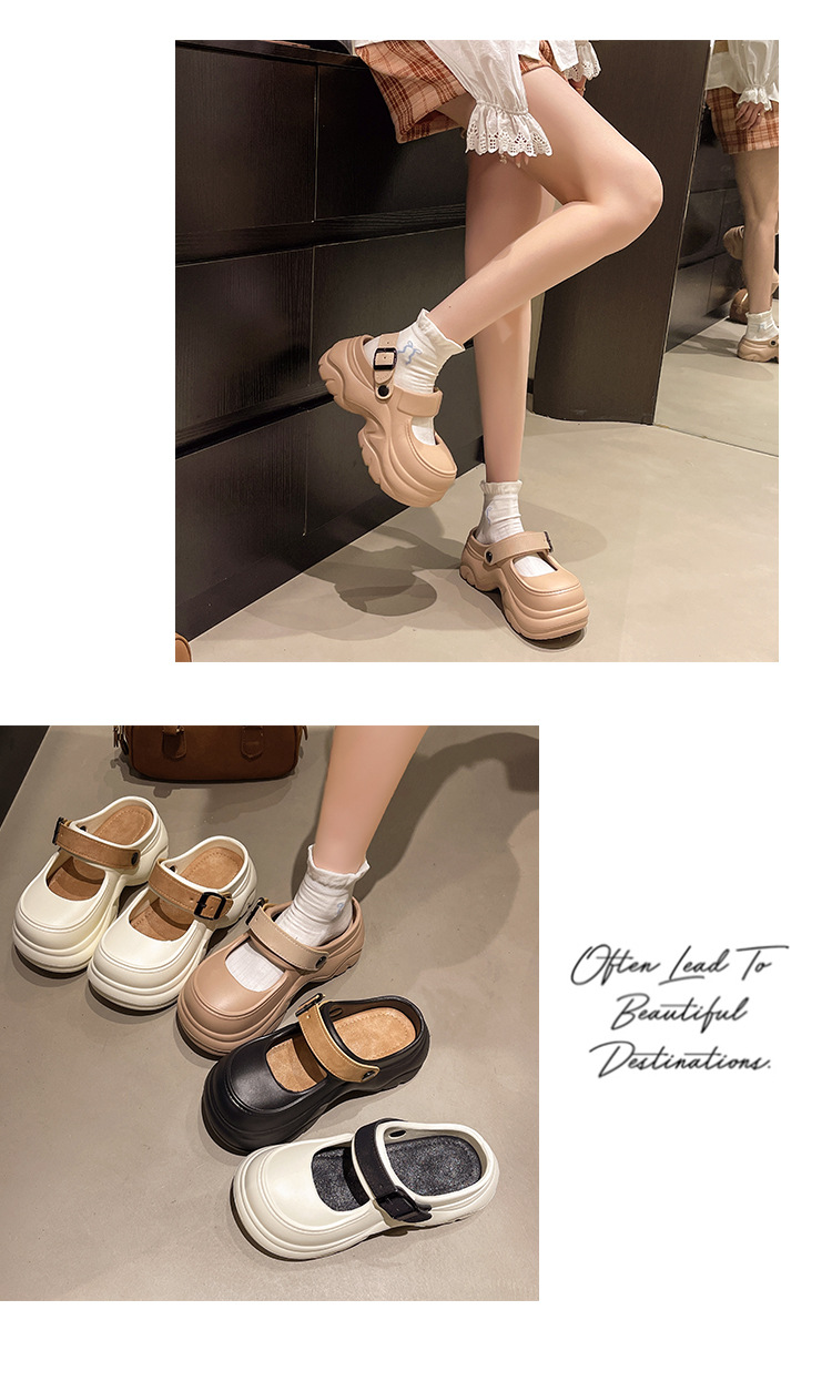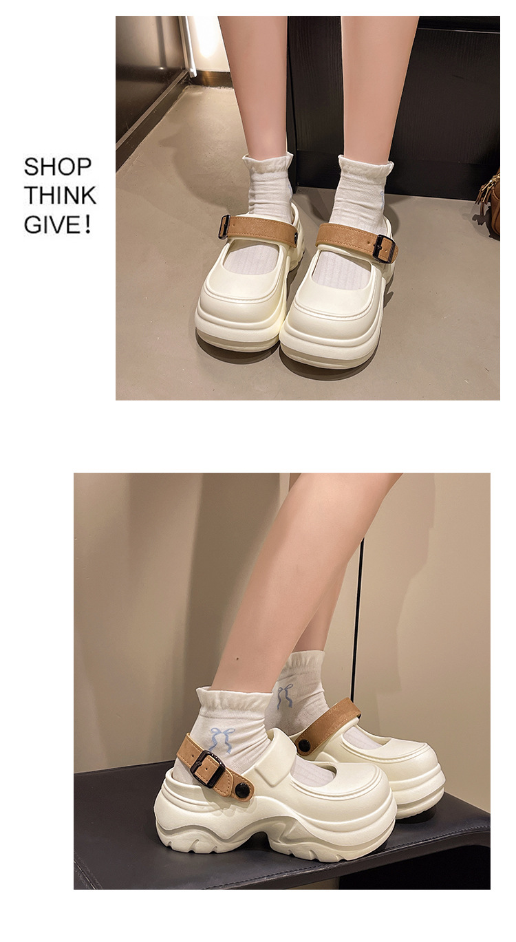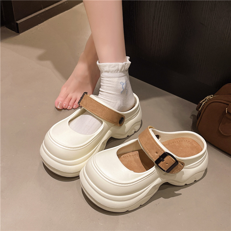 두꺼운 밑창 메리 제인 샌들 2025 악어 신발 새로운 색상 차단 두꺼운 밑창 다목적 겉옷 여성 발가락 슬리퍼 국경스토어 가기
