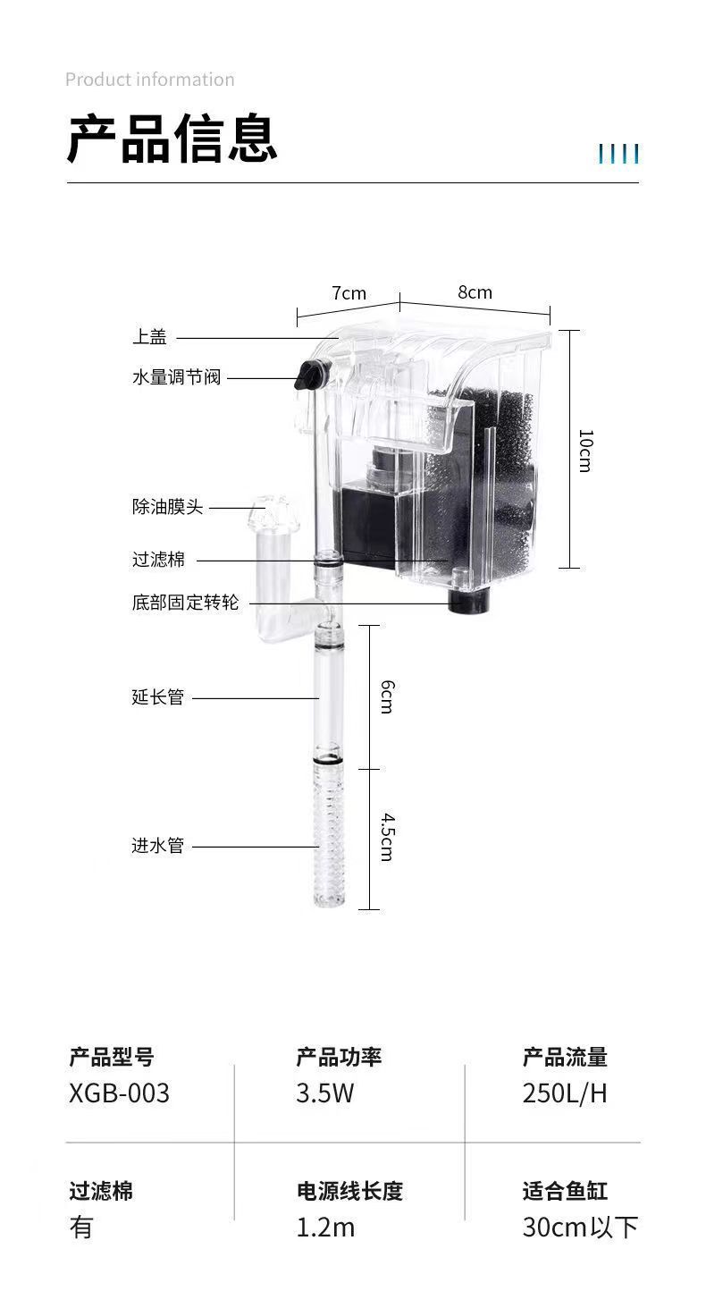 유트 어항 필터 3 대 1 폭포 벽 장착 장비 작은 정수기 물고기 양식 순환 수 시스템