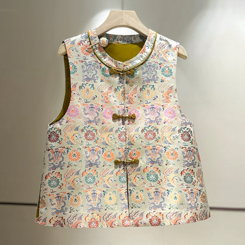 새로운 중국 스타일 중국 스타일 송진 하이 엔드 조끼 최고 여성의 봄과 가을 외복 조끼 조끼 자카드 탕 스타일 조끼스토어 가기