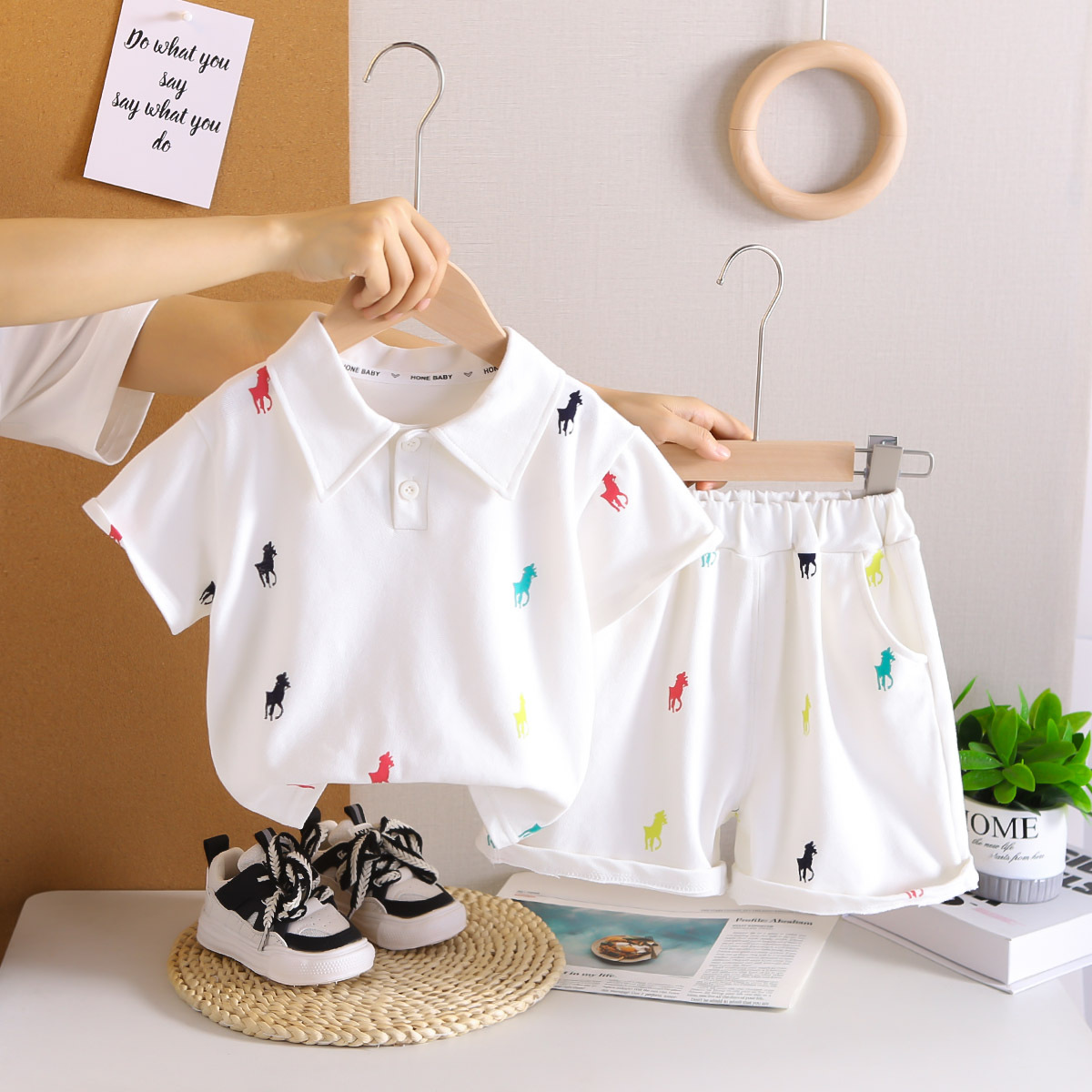 대외 무역 남성과 여성의 아기 셔츠 세트 여름 서부 패션 국경 아동복 도매 캐주얼 반팔 셔츠 세트스토어 가기