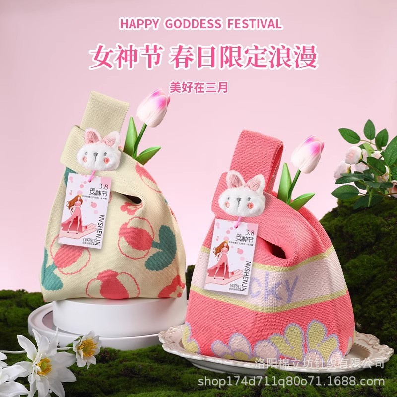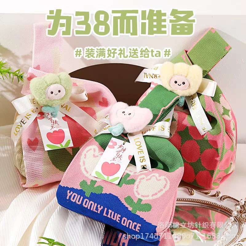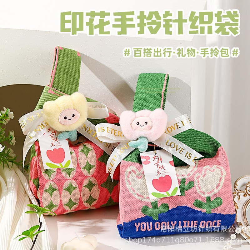 새로운 꽃 니트 가방 여성 휴일 선물 가방 핸드백 짠 환경 보호 가방 여신 축제 선물 가방스토어 가기
