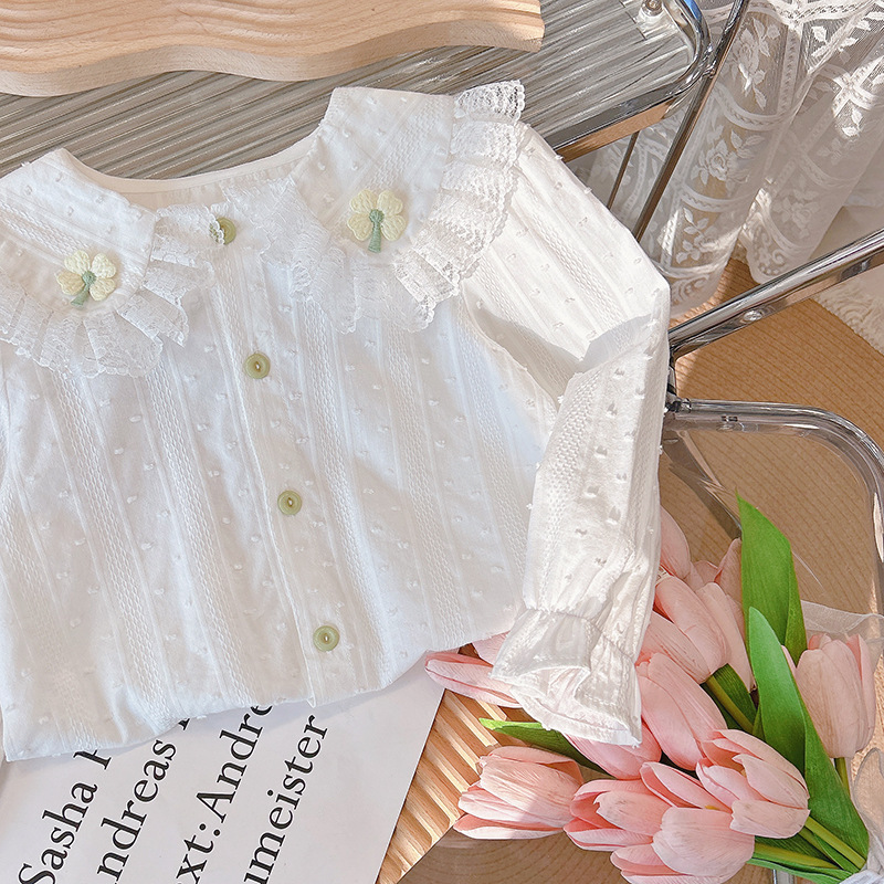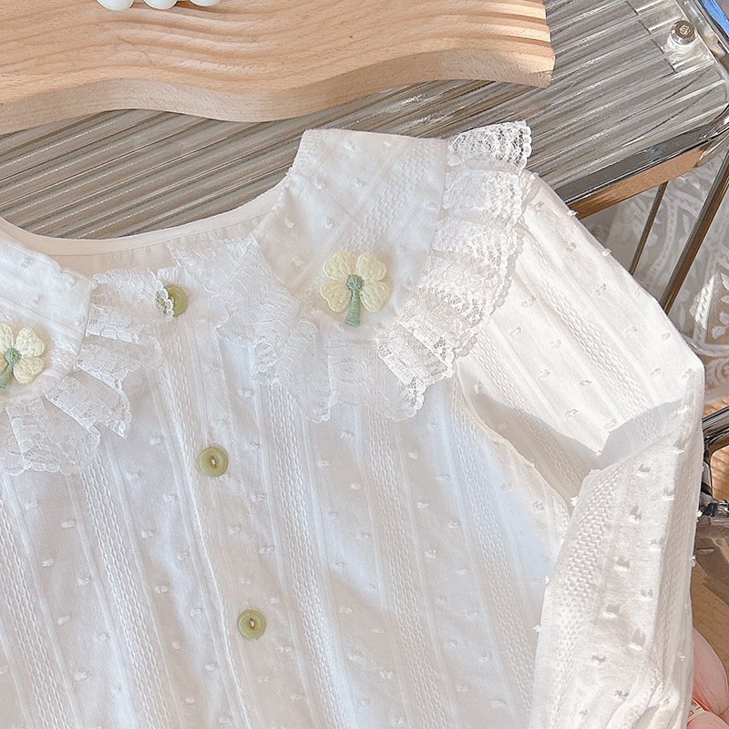 가을 새로운 면 셔츠 셔츠 봄과 가을 긴 소매 소녀 인형 칼라 레이스 4 잎 클로버 탑스토어 가기
