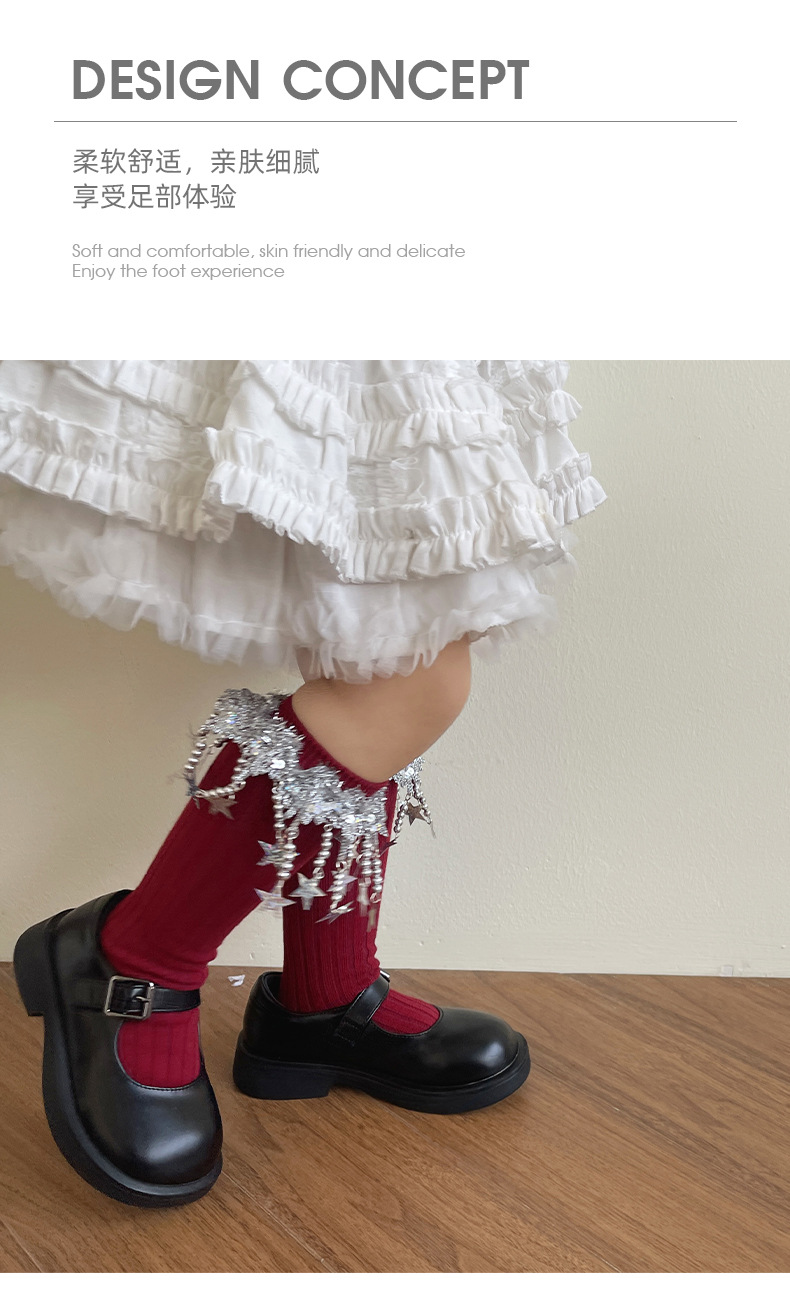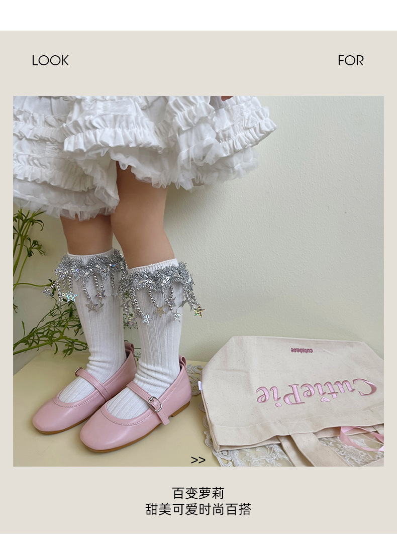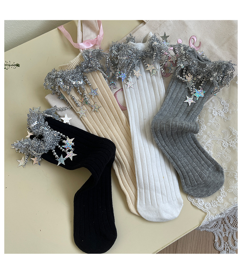 2025 봄 새로운 스팽글 스파클링 스타 술 스타킹 소녀 양말 무대 공연 양말 어린이 양말